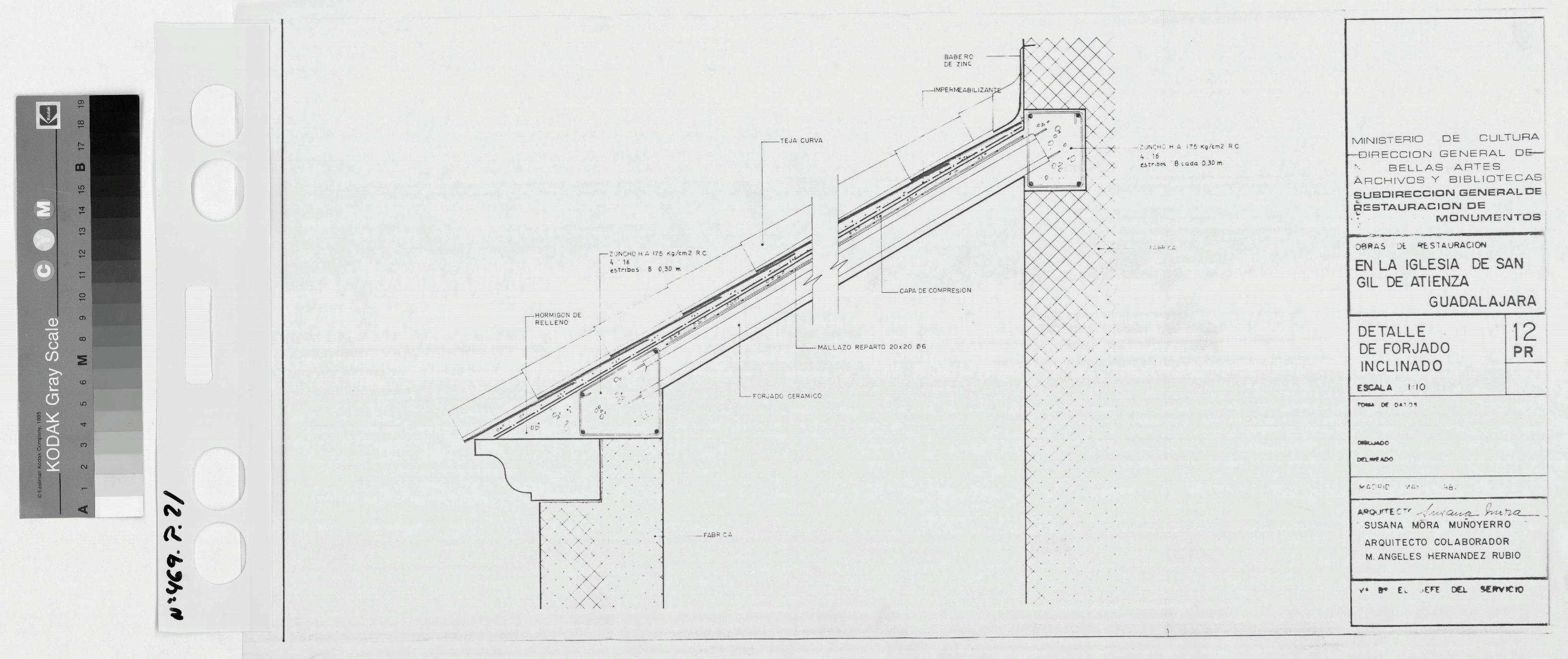 IGLESIA DE SAN GIL - ATIENZA - GUADALAJARA -: DETALLE DE FORJADO INCLINADO, seccion con descripcion de elementos, plano sin cotas.