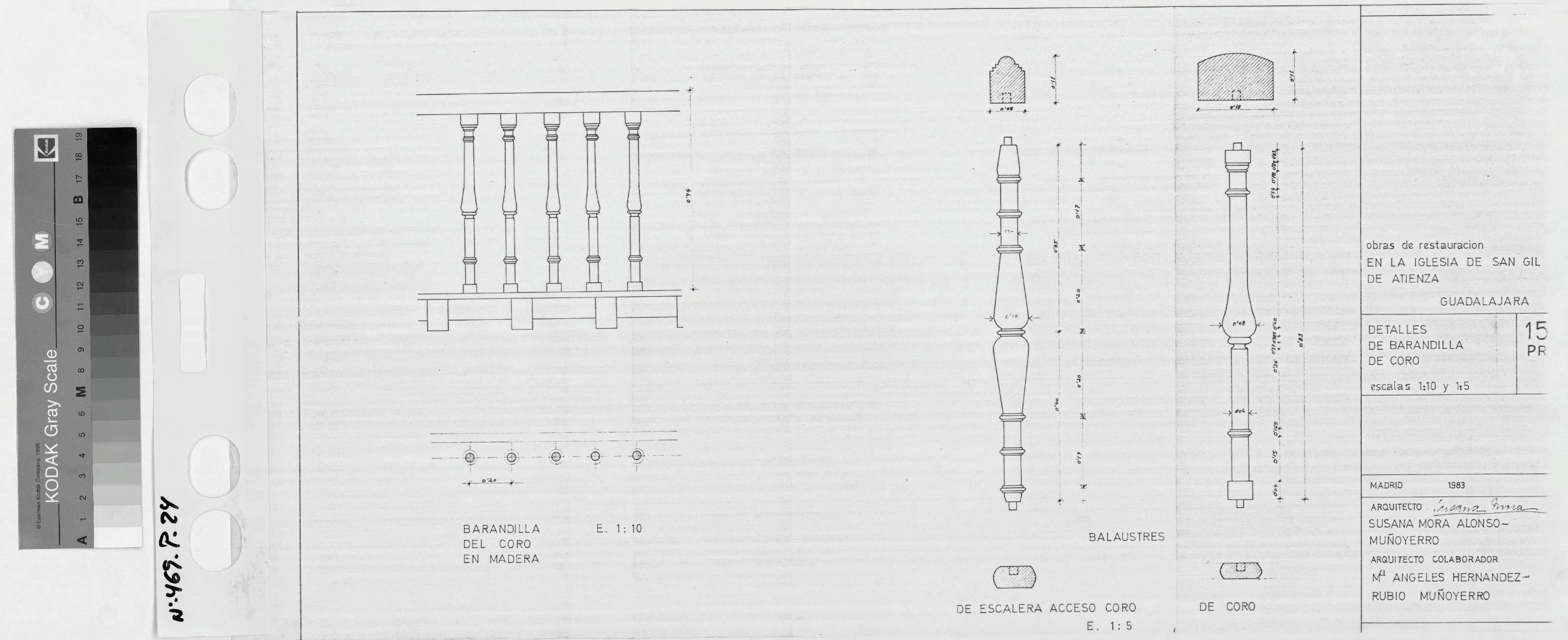 IGLESIA DE SAN GIL - ATIENZA - GUADALAJARA -: DETALLE DE BARANDILLA DE CORO, secciones y alzados , plano acotado.