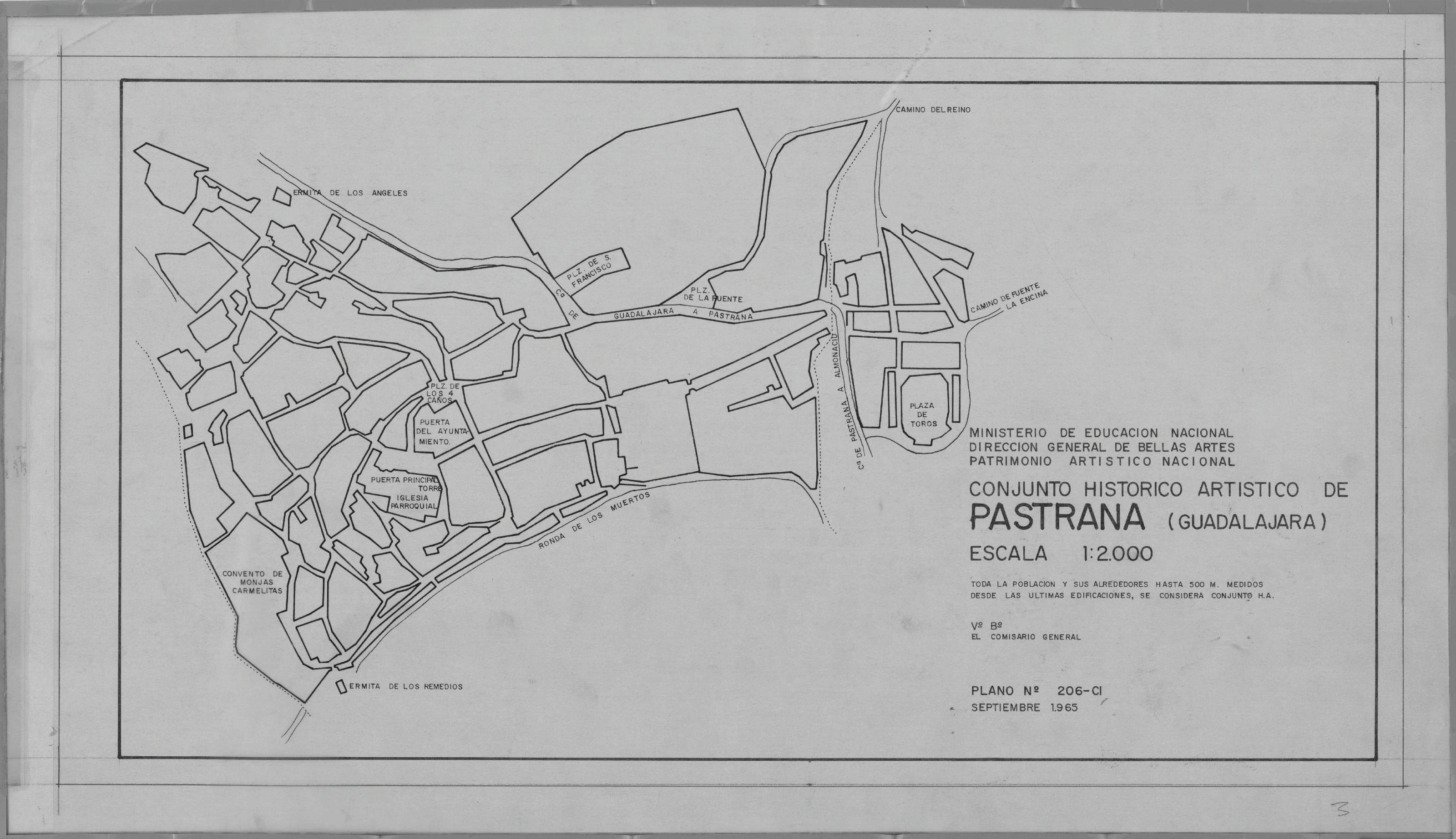 CONJUNTO HISTORICO ARTISTICO DE PASTRANA -GUADALAJARA -: PLANO GENERAL DEL CONJUNTO, En este plano de conjunto nos señala varias zonas Ademas situa algunos monumentos, plano sin cotas.