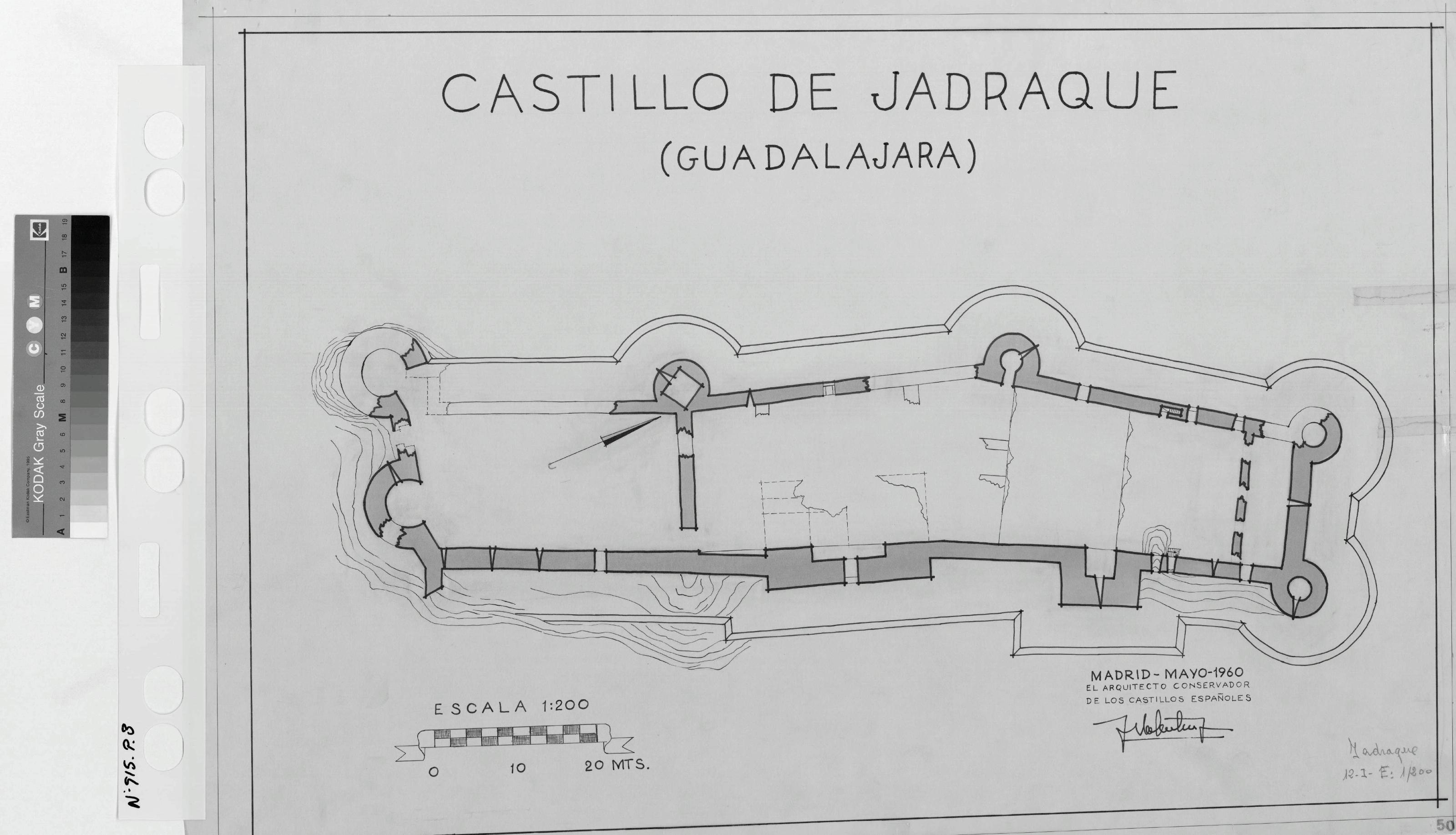 CASTILLO DE JADRAQUE - GUADALAJARA -: PLANTA GENERAL, En este plano vemos dibujado parte de la muralla, y los muros sombreados de la planta, plano sin cotas.