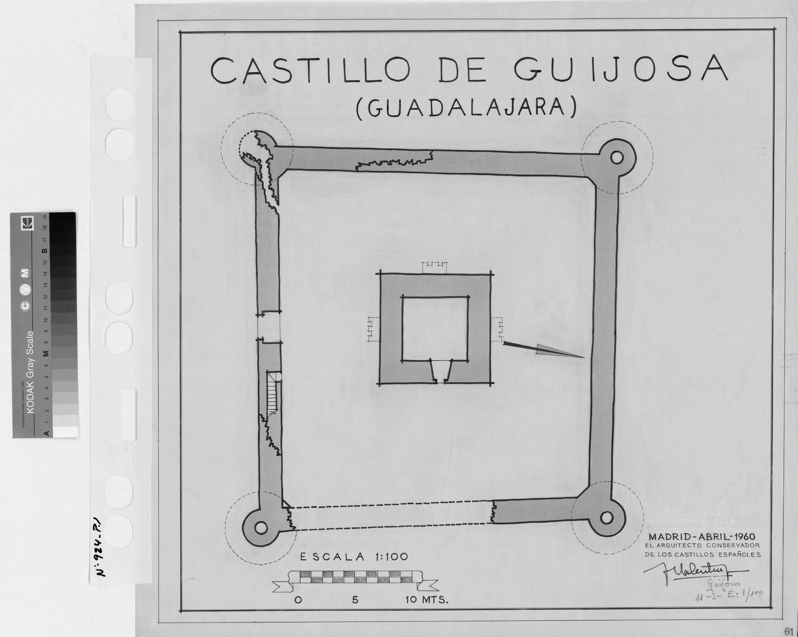 CASTILLO DE GUIJOSA - GUADALAJARA-: PLANTA GENERAL Plano, donde aparece dibujada la planta general , con muros regruesados y sombreados, plano sin cotas.