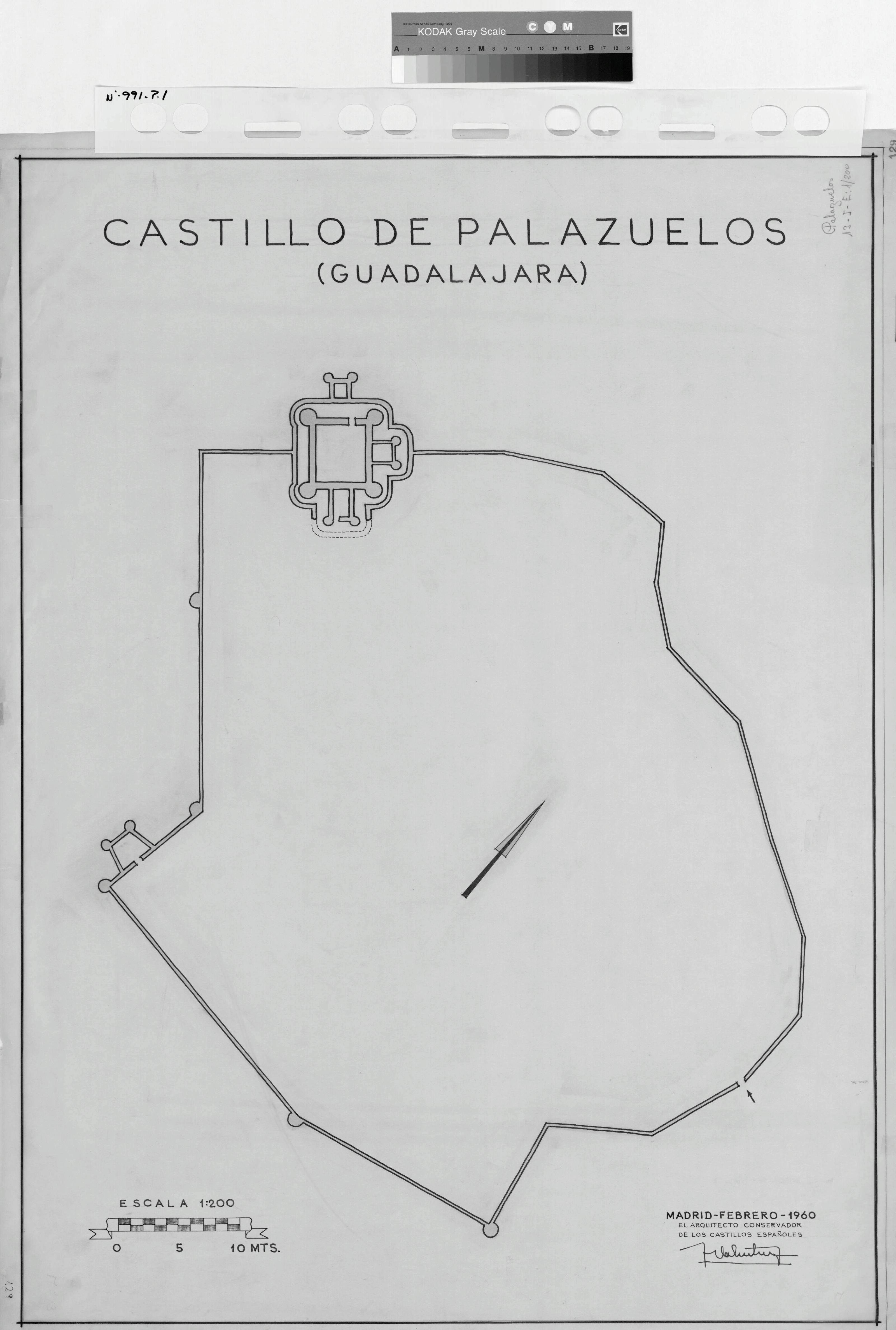 CASTILLO DE PALAZUELOS - GUADALAJARA-: PLANTA GENERAL Plano, donde aparece dibujada la planta general , con muros regruesados y sombreados, plano sin cotas.