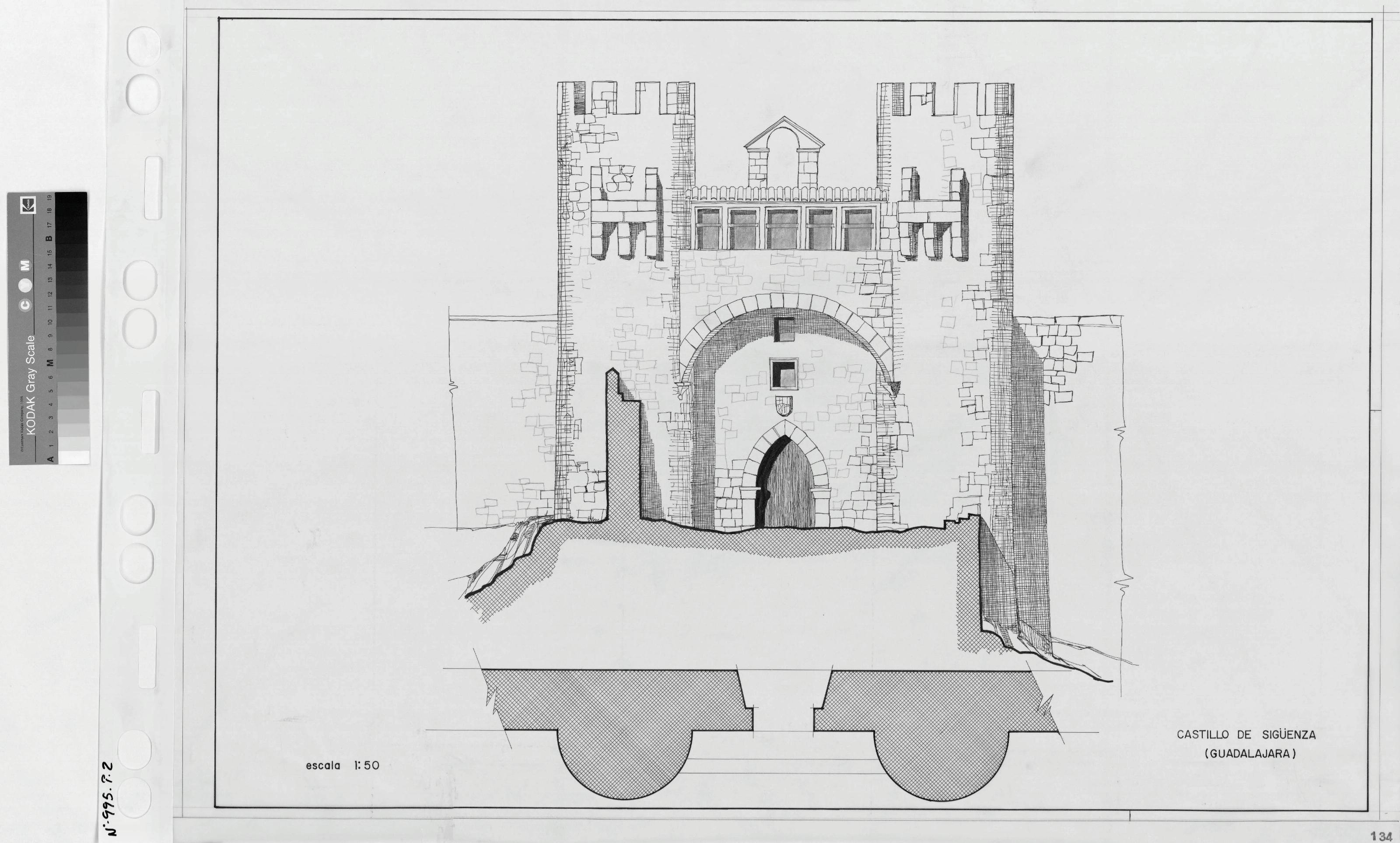 CASTILLO DE SIGÜENZA - GUADALAJARA-: ALZADO, plano donde aparece dibujado, el acceso principal del castillo, plano sin cotas