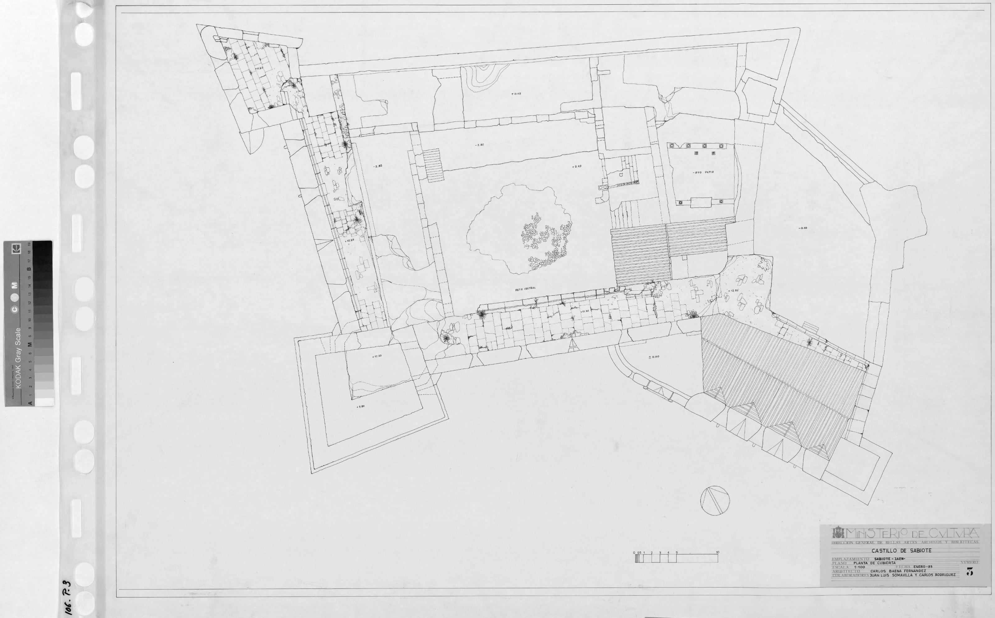 CASTILLO DE SABIOTE - JAEN -: PLANTA de CUBIERTAS . Plano , donde aparecen marcadas algunas cotas de alturas,