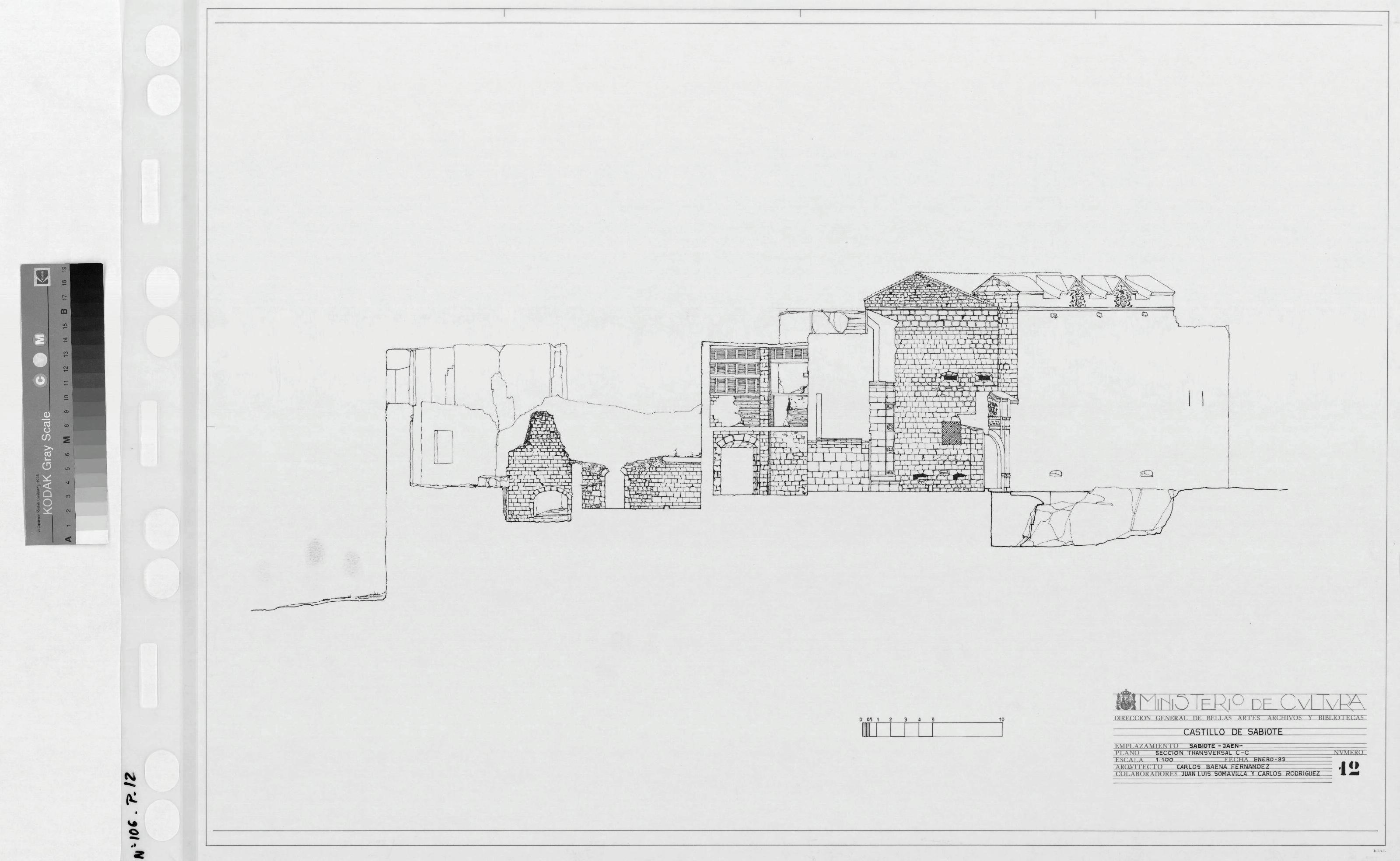 CASTILLO DE SABIOTE - JAEN -: SECCION TRANSVERSAL C-C, Plano dibujado con detalle, sin cotas.