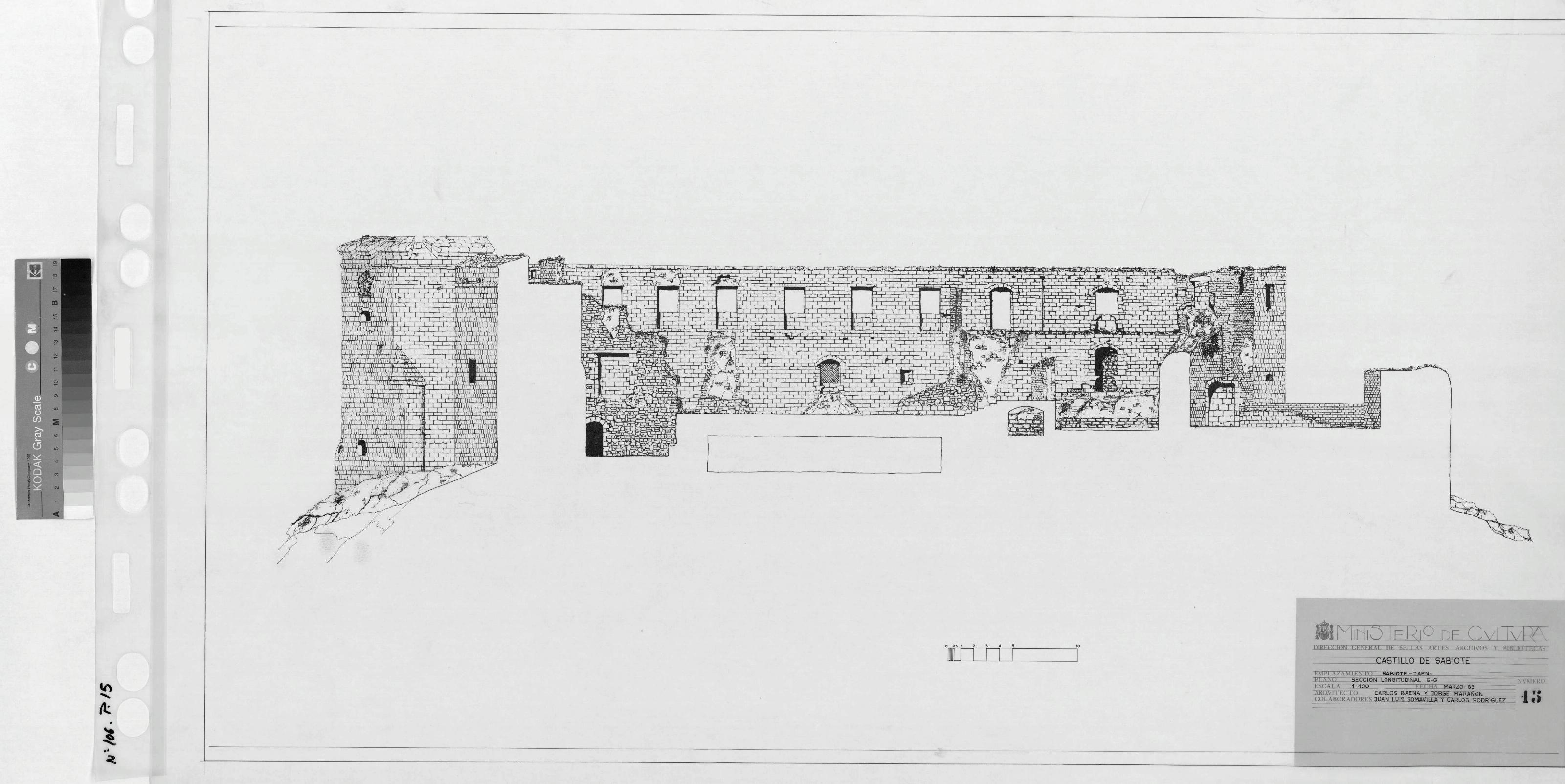 CASTILLO DE SABIOTE - JAEN -: SECCION LONGITUDINAL G-G , Plano dibujado con detalle, sin cotas.