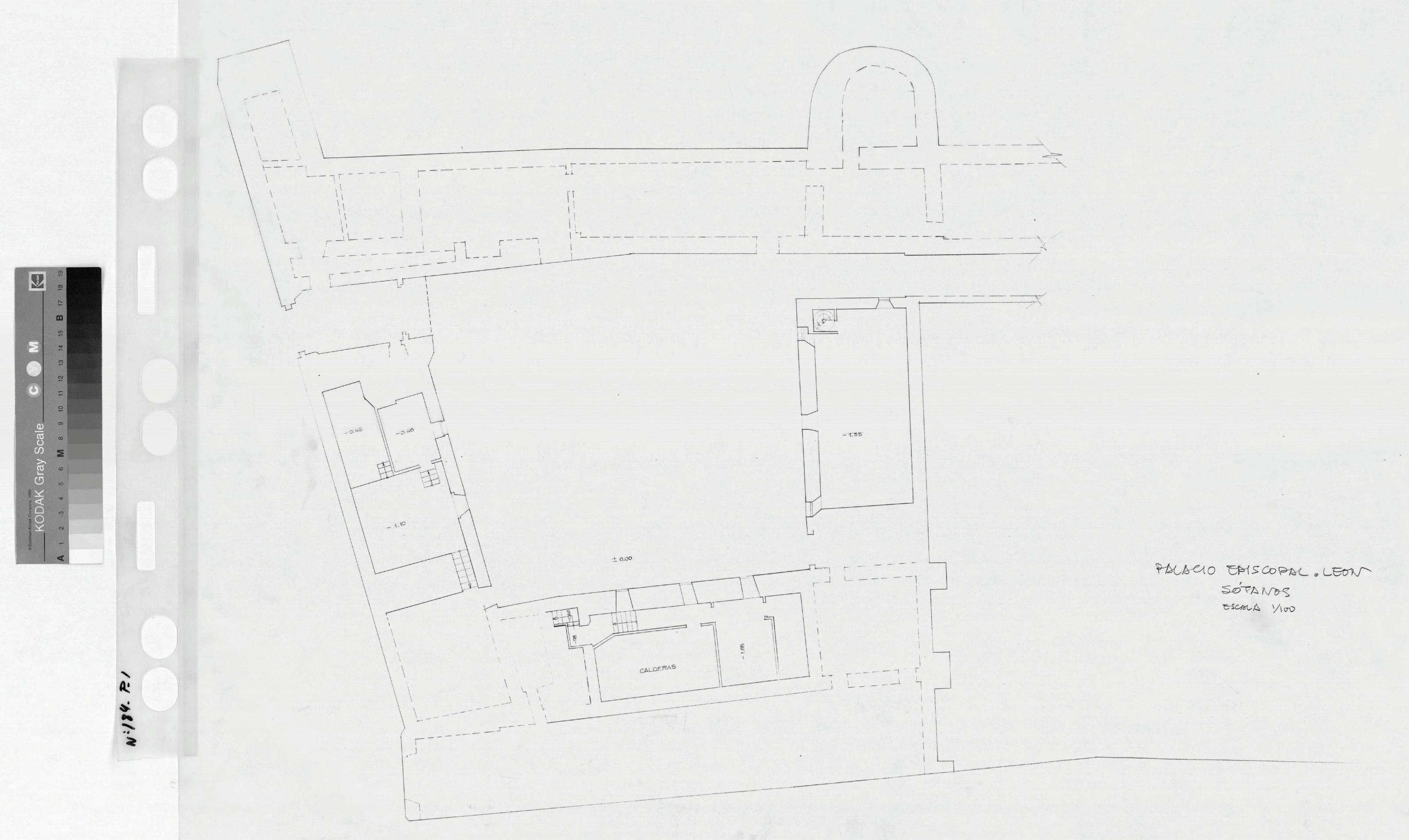 PALACIO EPISCOPAL DE LEON: PLANTA DE SOTANOS Con escaleras que comunican estancias a distintas alturas y cotas de nivel en cada habitación