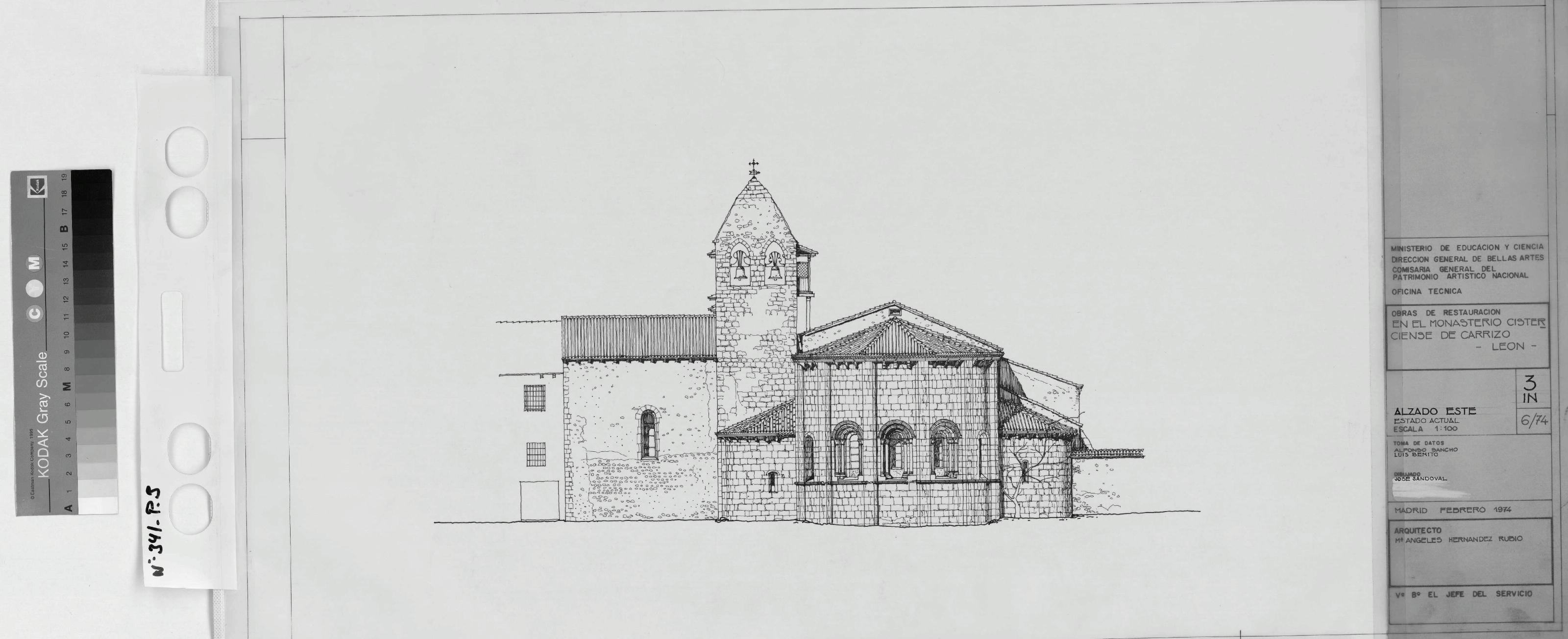 OBRAS DE RESTAURACION EN EL MONASTERIO CISTERCIENSE DE CARRIZO - LEON -: ALZADO ESTE - Estado ActualCon despieces, rayados y sombras. Sin cotas ni notas. Sin firmar