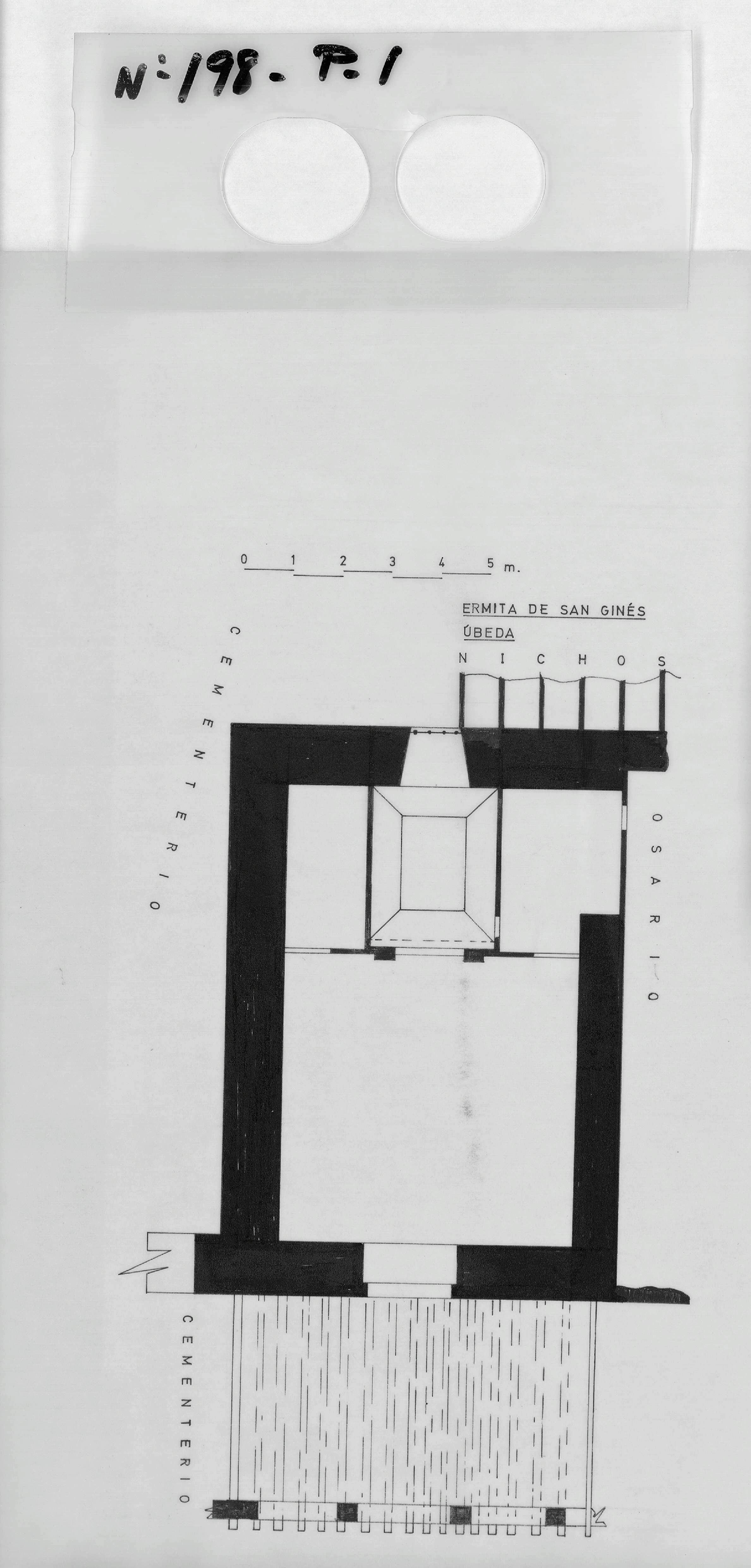 ERMITA DE SAN GINES - UBEDA - JAEN .: PLANTA BAJA . Plano , tipo croquis, donde aparece marcada la zona de osario, y cementerio, plano sin cotas.