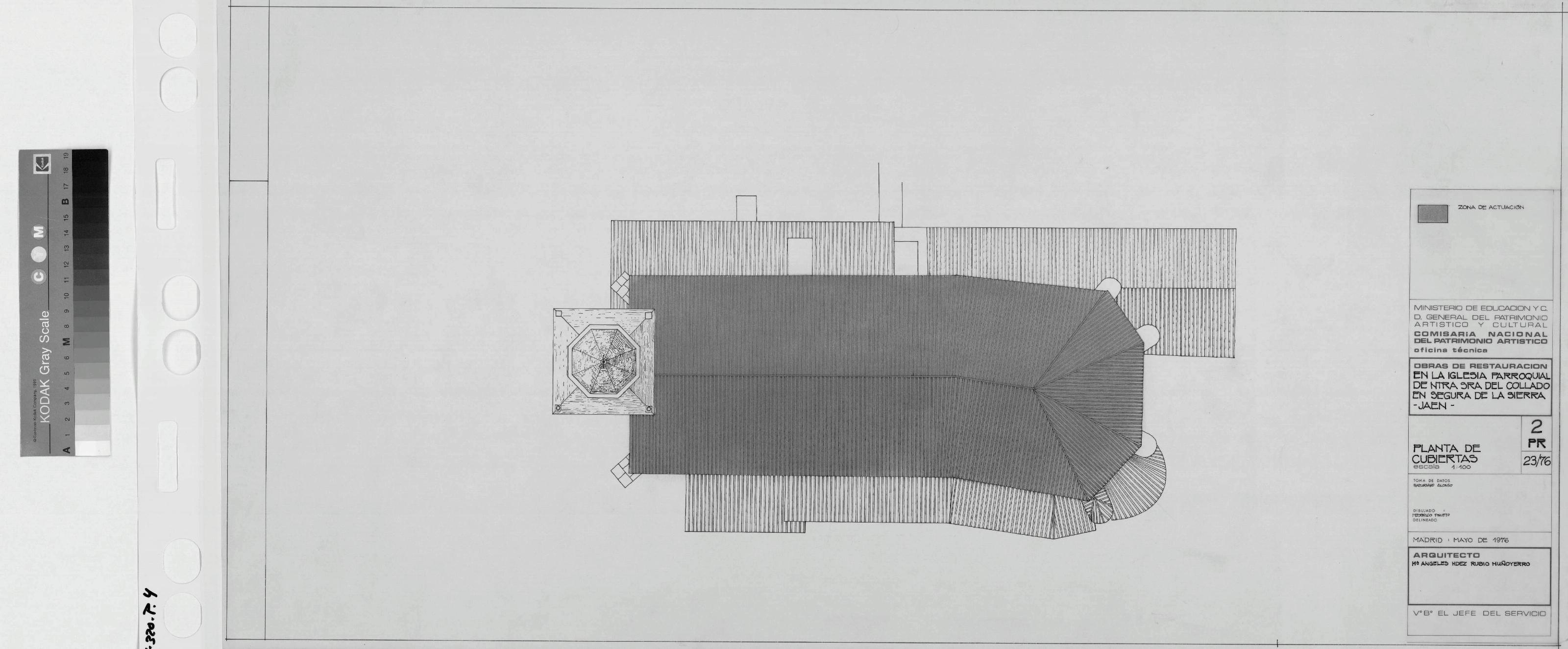 IGLESIA PARROQUIAL DE NUESTRA SEÑORA DEL COLLADO - JAEN.: PLANTA DE CUBIERTAS. Planta de cubiertas , marca una zona de actuacion , plano sin cotas.