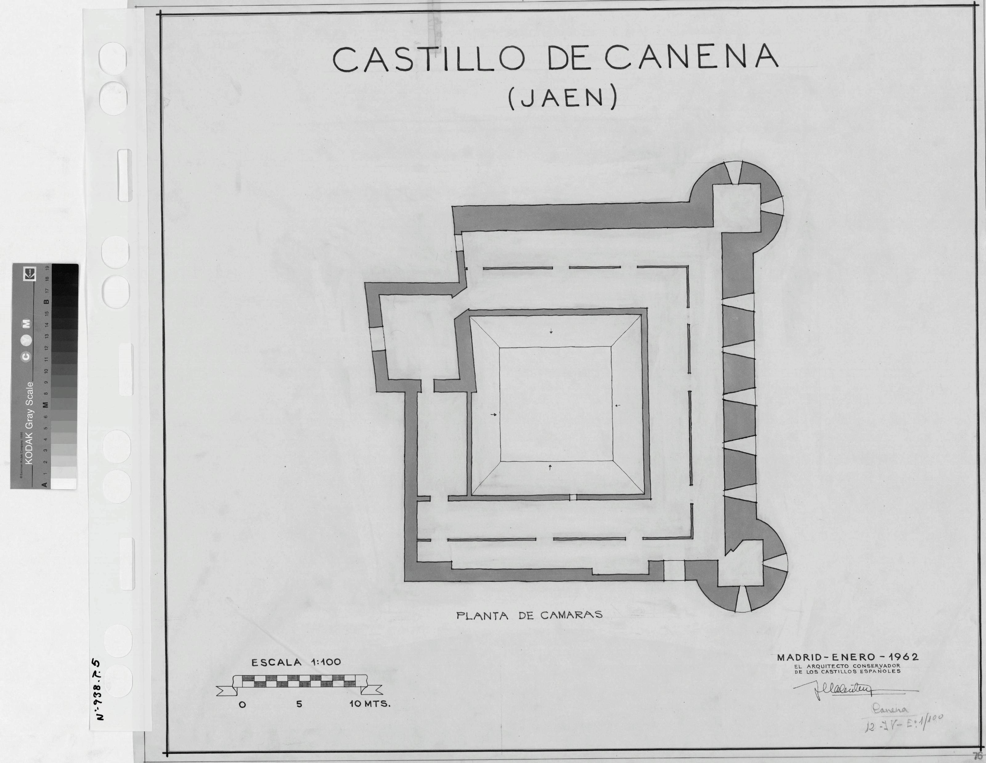 CASTILLO DE CANENA . JAEN. -: PLANTA DE CAMARAS , Plano con muros regruesados y sombreados, plano sin cotas.