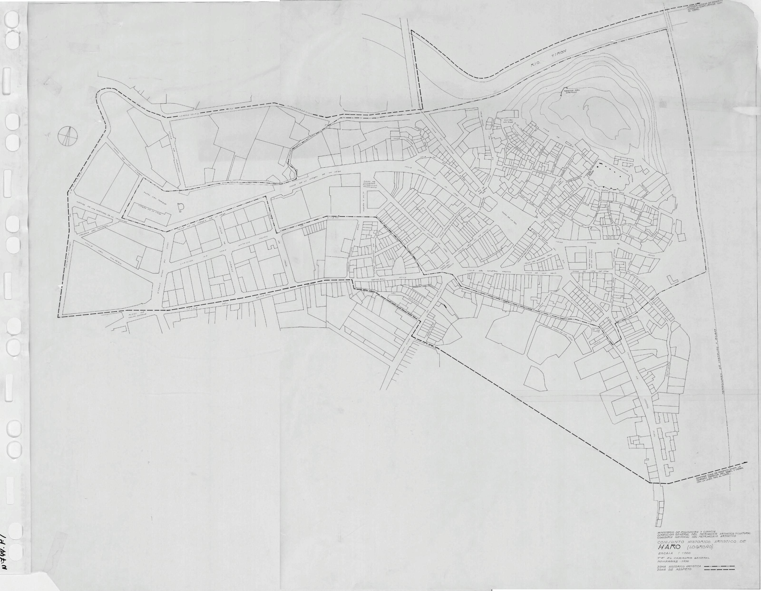 CONJUNTO HISTORICO ARTISTICO DE HARO: PLANO DE SITUACION, o emplazamiento del conjunto en este plano marca dos zonas a diferenciar: historico artistico del conjunto y de respeto, plano sin cotas.