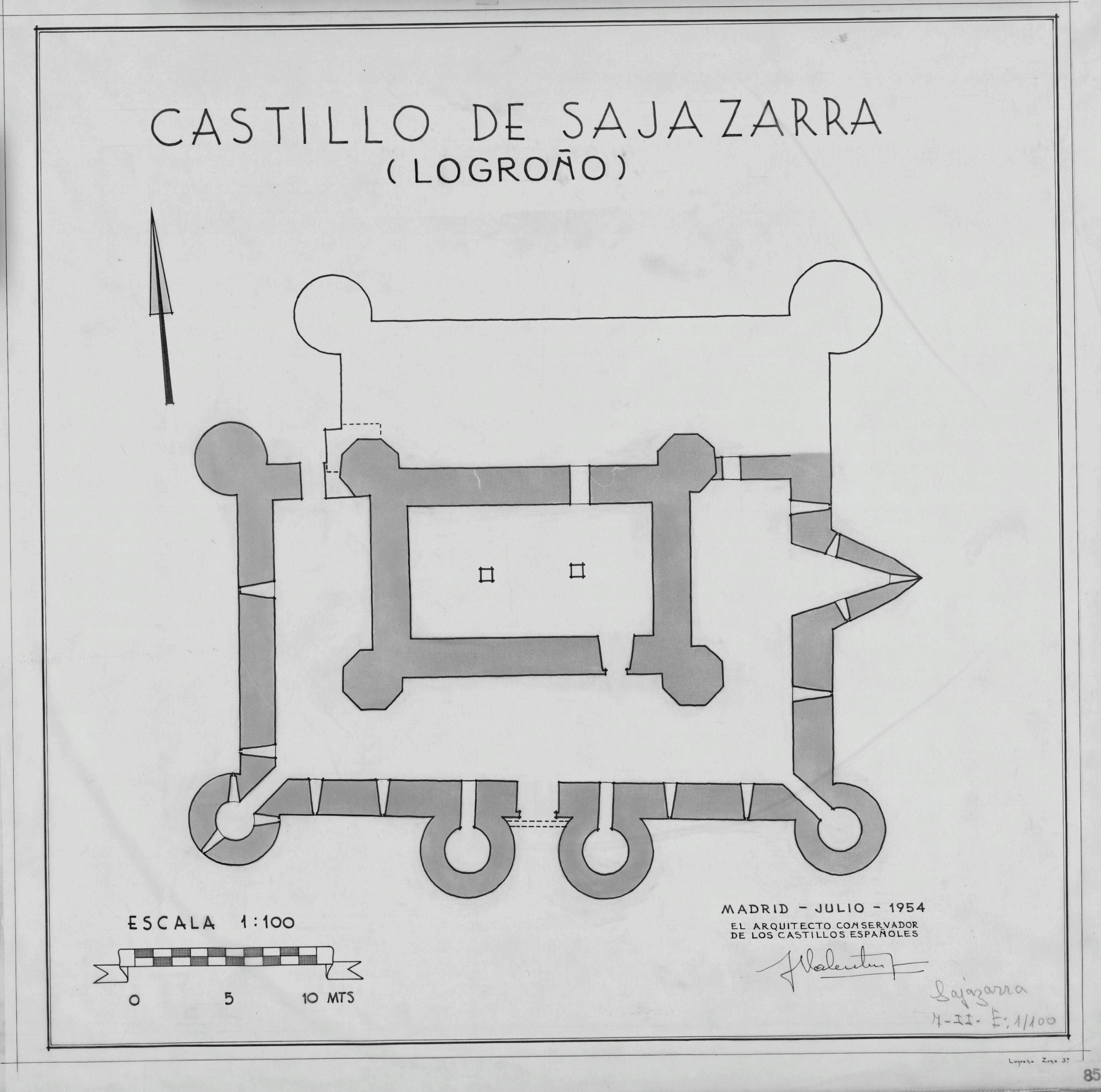 CASTILLO DE SAJAZARRA - LOGROÑO-: PLANTA GENERAL DEL CASTILLO, Plano con muros regruesados y sombreados, sin cotas.