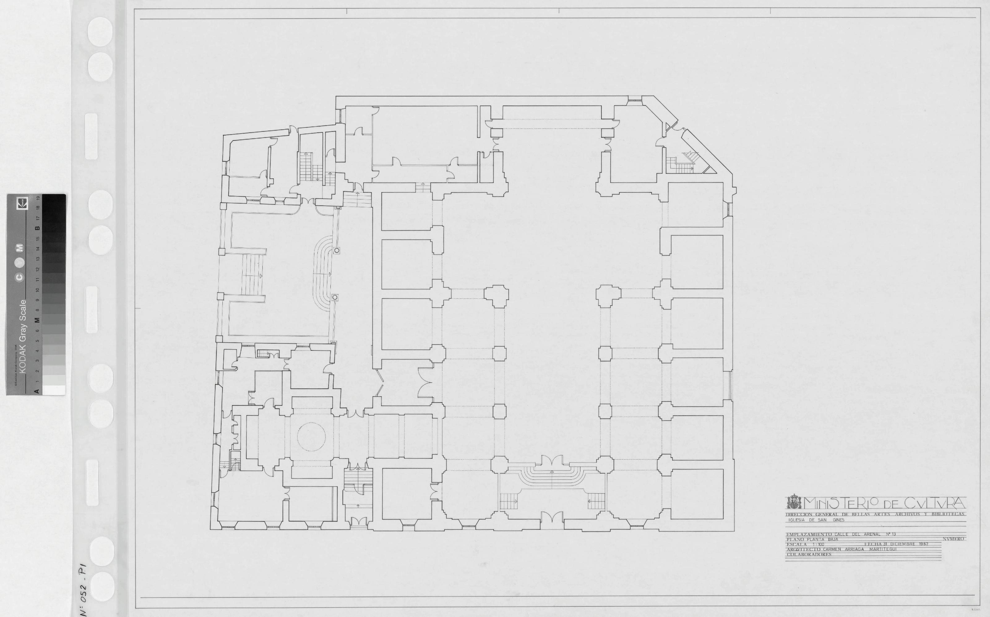 IGLESIA DE SAN GINES: PLANTA BAJA , plano dibujado con muros regruesados, con emplazamiento a calle Arenal , plano sin cotas.
