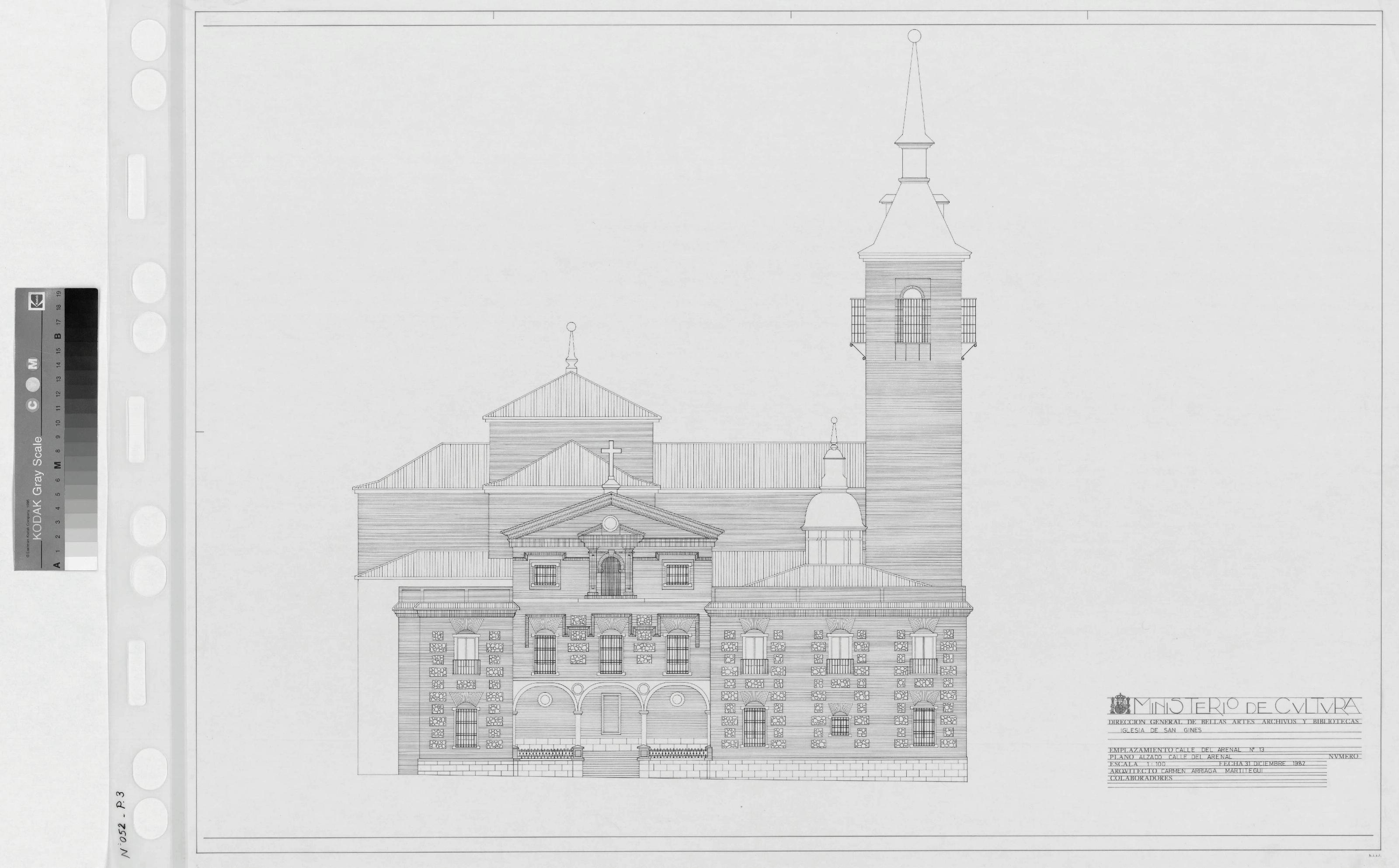 IGLESIA DE SAN GINES: ALZADO CALLE DEL ARENAL , plano dibujado con detalle , emplazamiento a calle Arenal , plano sin cotas.