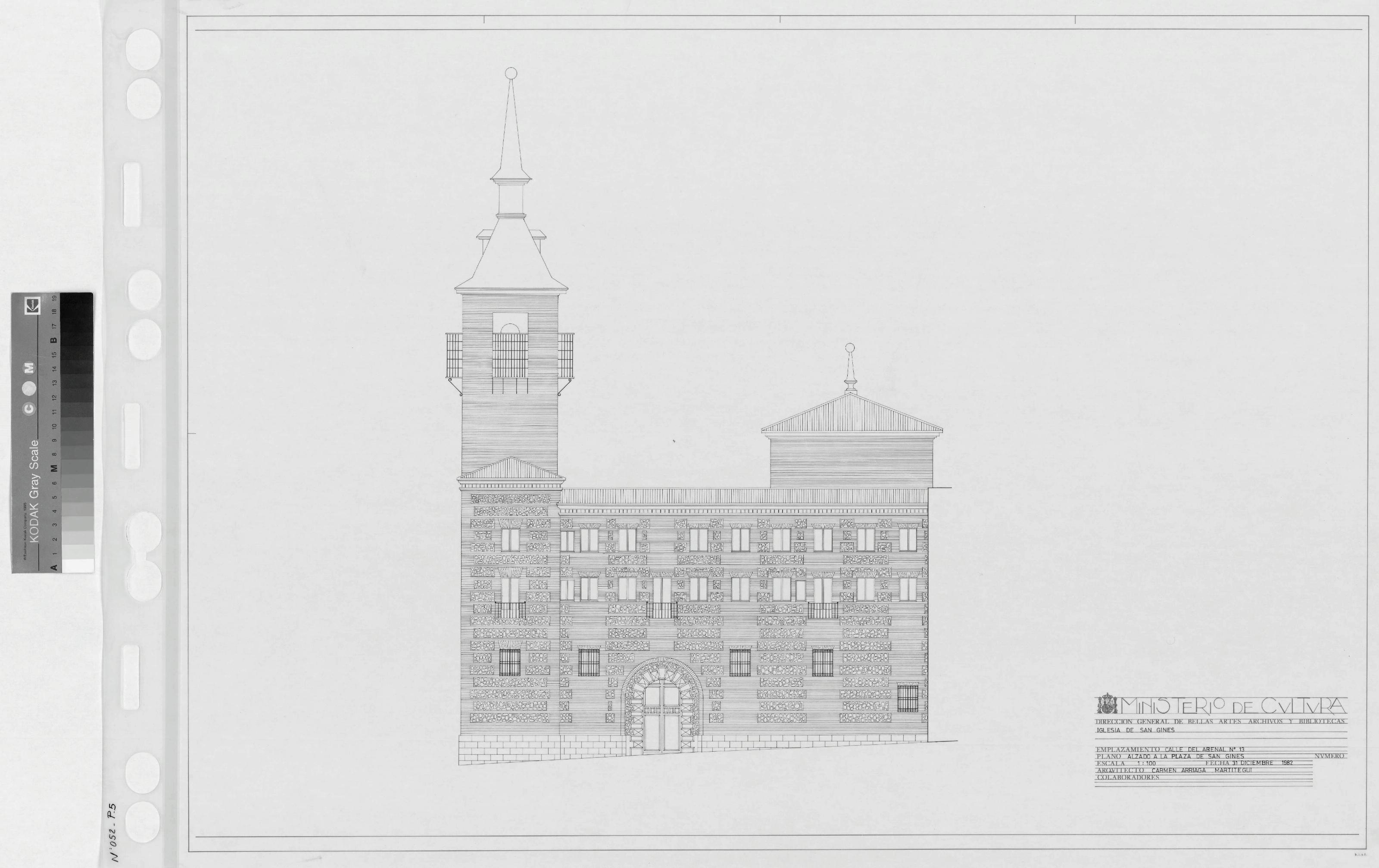 IGLESIA DE SAN GINES: ALZADO A PLAZA DE SAN GINES , plano dibujado con detalle , emplazamiento a calle Arenal , plano sin cotas.
