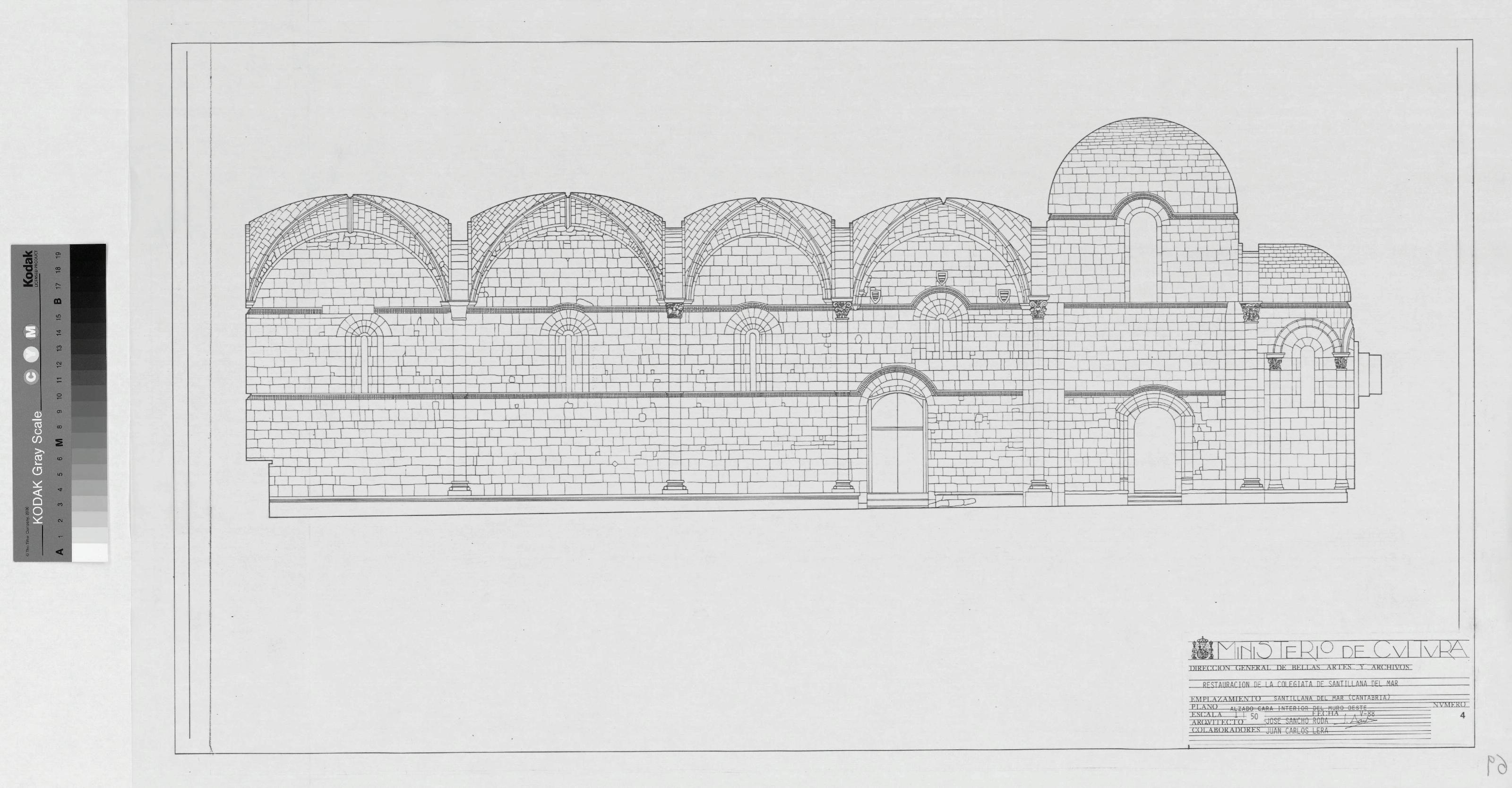 COLEGIATA DE SANTILLANA DEL MAR: ALZADO CARA INTERIOR DEL MURO OESTE