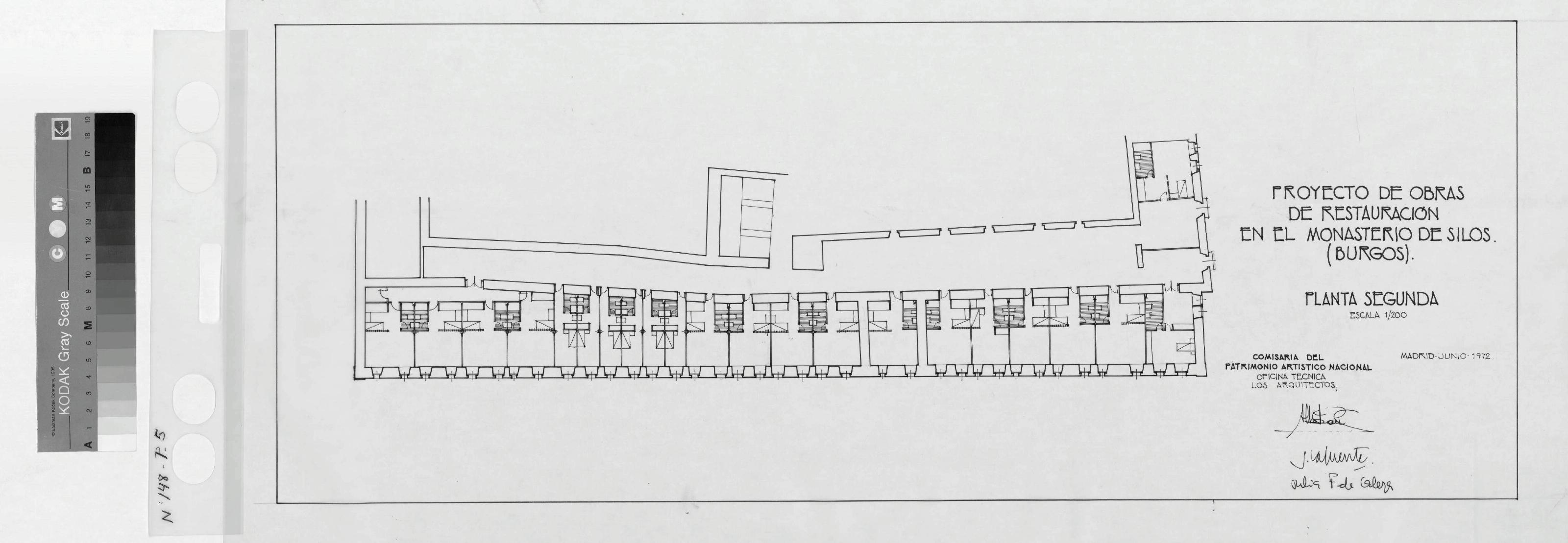 MONASTERIO DE SILOS. -BURGOS-: PLANTA SEGUNDA . Plano de planta, esquematico, plano de distribucion, marcando las distintas dependencias de la planta , sin acotar.