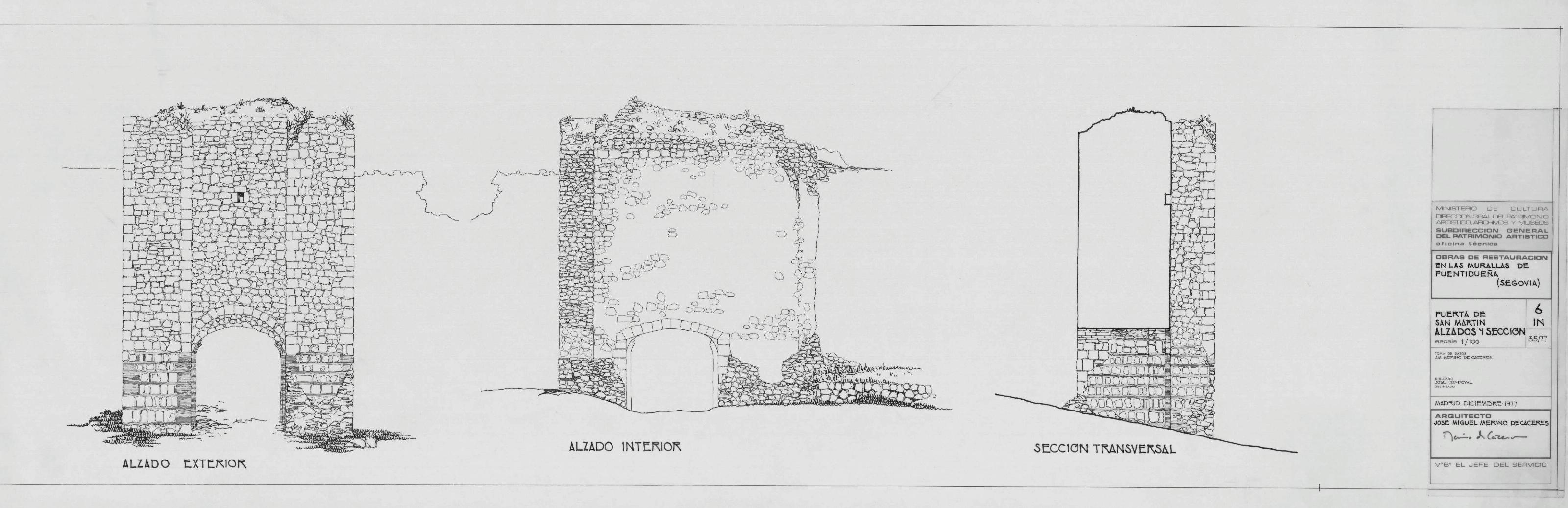 MURALLAS DE FUENTIDUEÑA SEGOVIA: ALZADOS Y SECCION . ZONA DE LA PUERTA SAN MARTIN