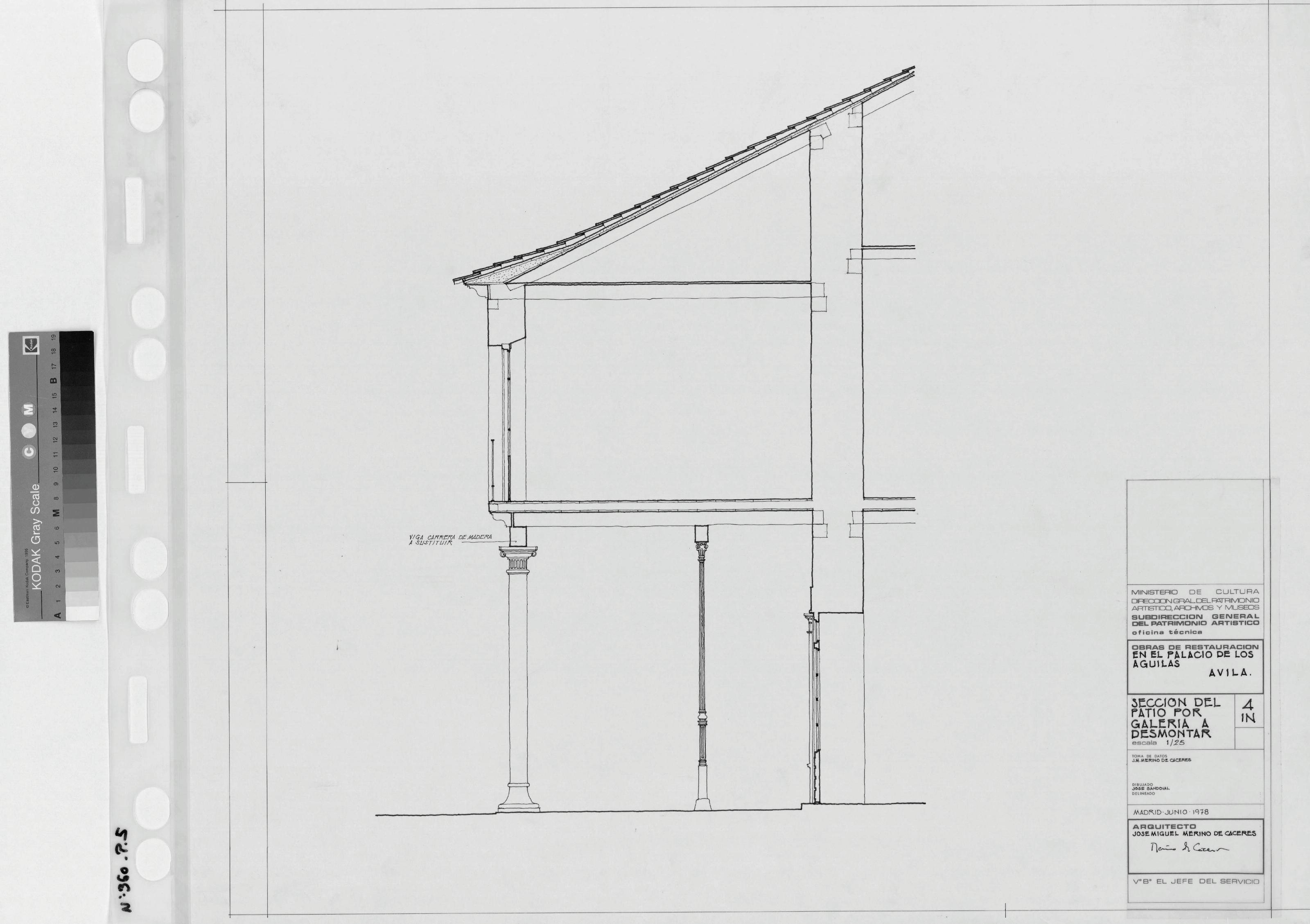 PALACIO DE LAS AGUILAS.: SECCION DEL PATIO, POR GALERIA A DESMONTAR.