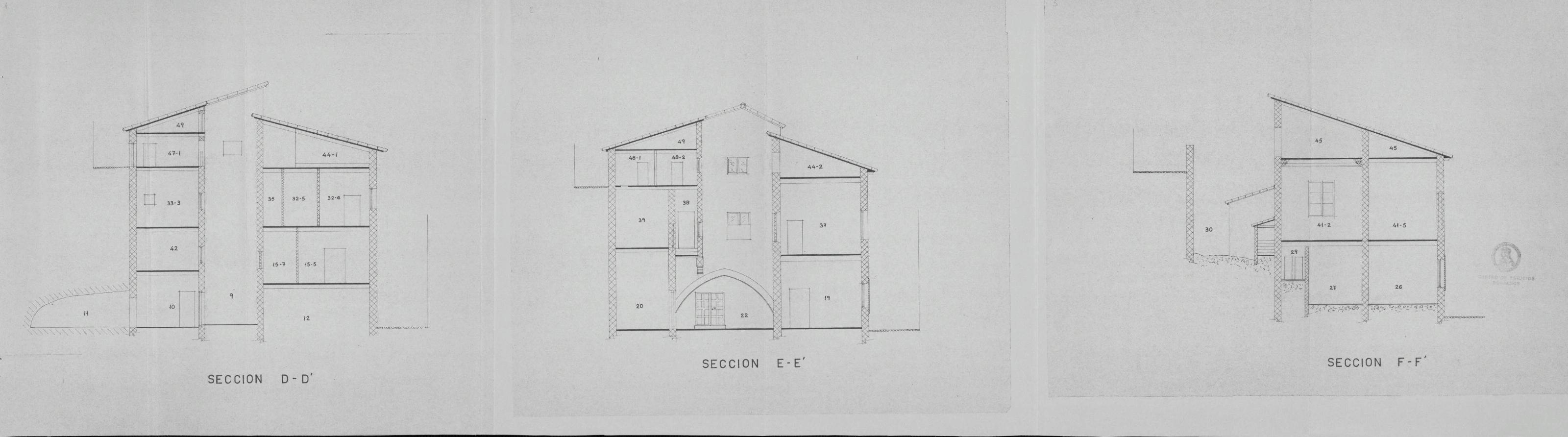 Casa de las Conchas de Borja ( Zaragoza ) -Servicios Tecnicos-: Sección D-D¿ Sección E-E¿ Sección F-F¿