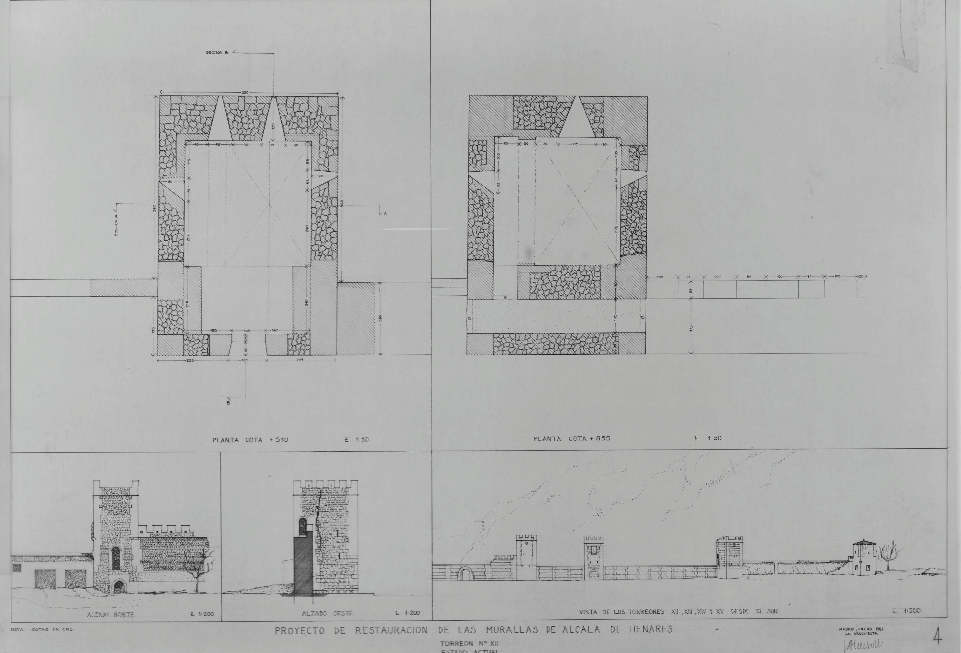 MURALLAS DE ALCALA DE HENARES: PLANTAS -ALZADO Y SECCION TORREON XII. ESTADO ACTUAL