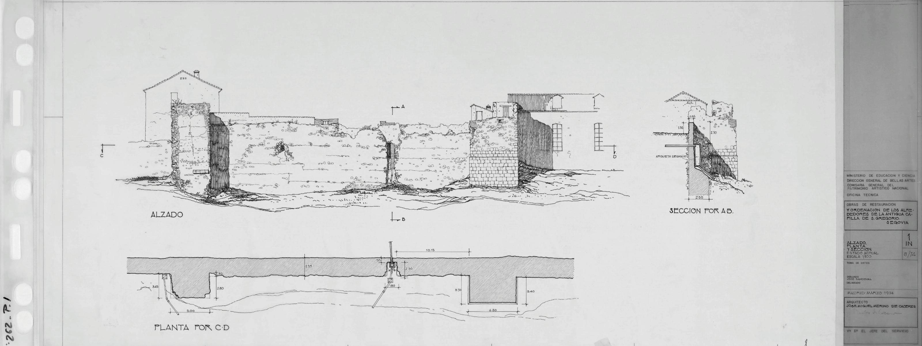 CAPILLA DE SAN GREGORIO-ORDENACION DE LOS ALREDEDORES DE LA ANTIGUA CAPILLA: ALZADO PLANTA Y SECCION -ESTADO ACTUAL