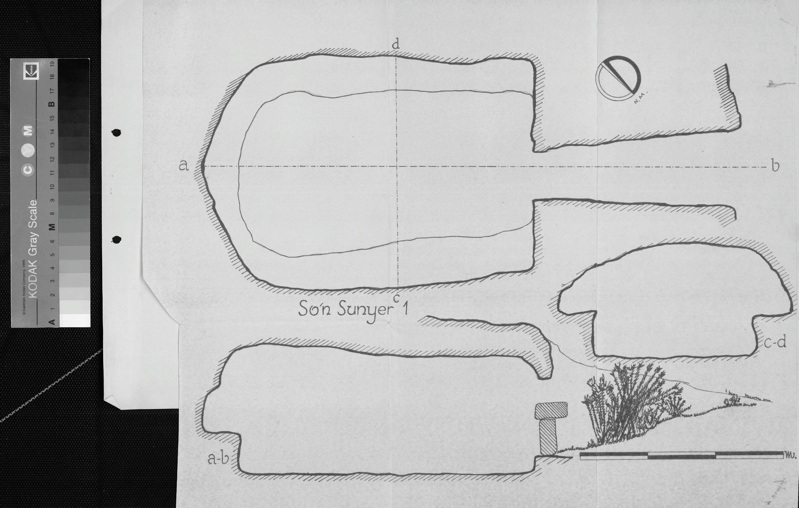 SON SUNYER: PLANTA Y SECCIONES DE LA CUEVA 1
