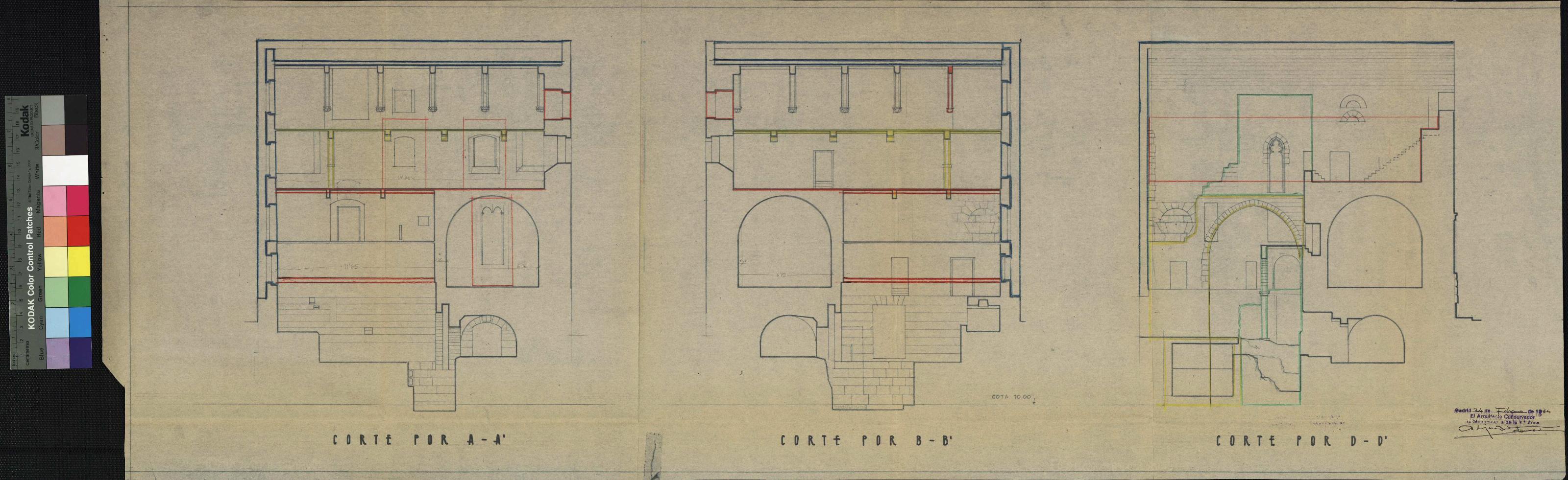 PROYECTO EN EL PRETORIO O PALACIO DE PILATOS DE TARRAGONA: CORTE POR B-B Y CORTE POR D-D