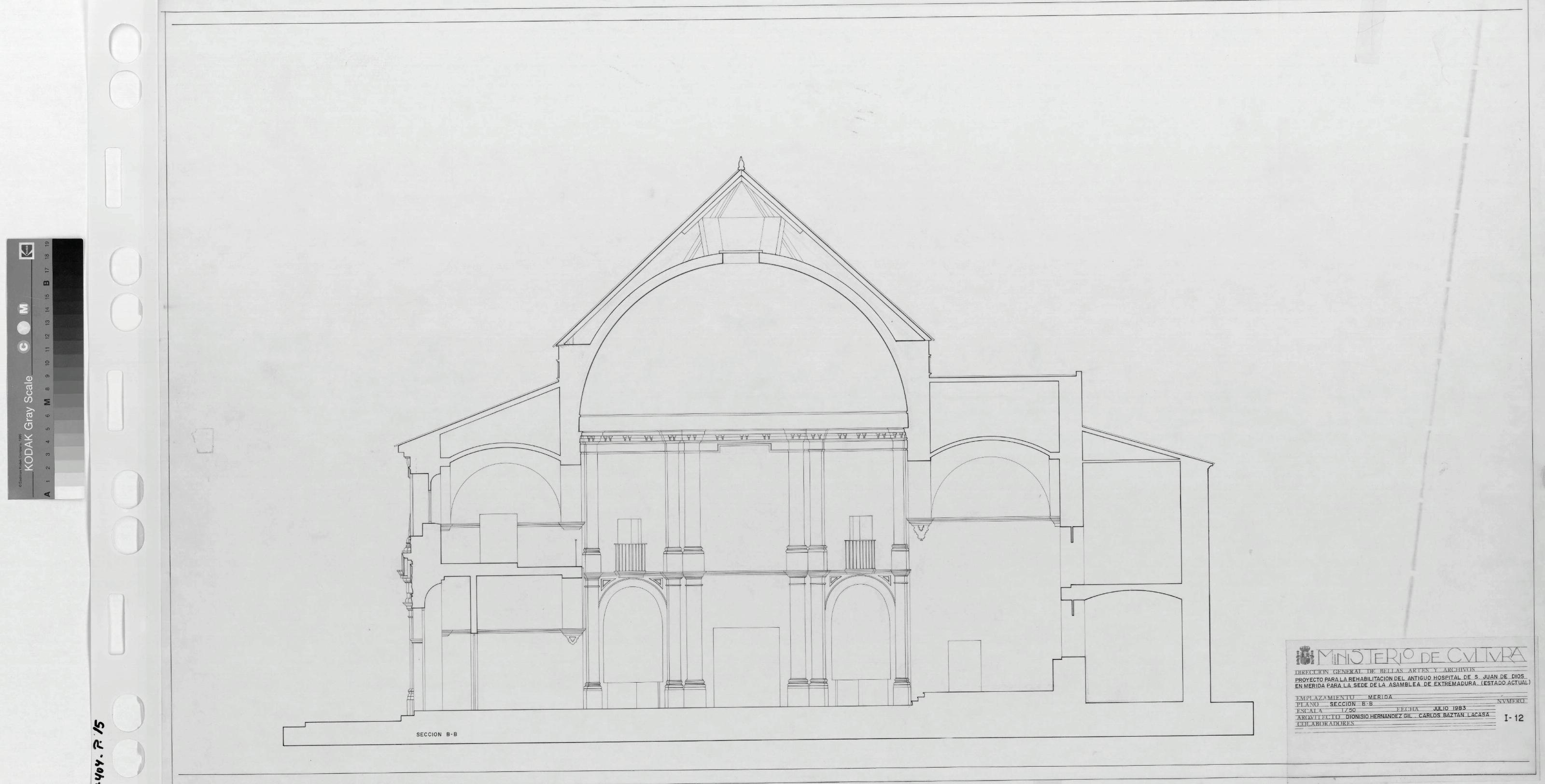 ASAMBLEA DE EXTREMADURA PROYECTO DE REHABILITACIÓN DEL ANTIGUO HOSPITAL DE S. JUAN DE DIOS PARA SEDE DE LA ASAMBLEA: SECCION B-B Figura en sello "Estado Actual" Bastante detallado. Sin notas ni cotas Sin firmar
