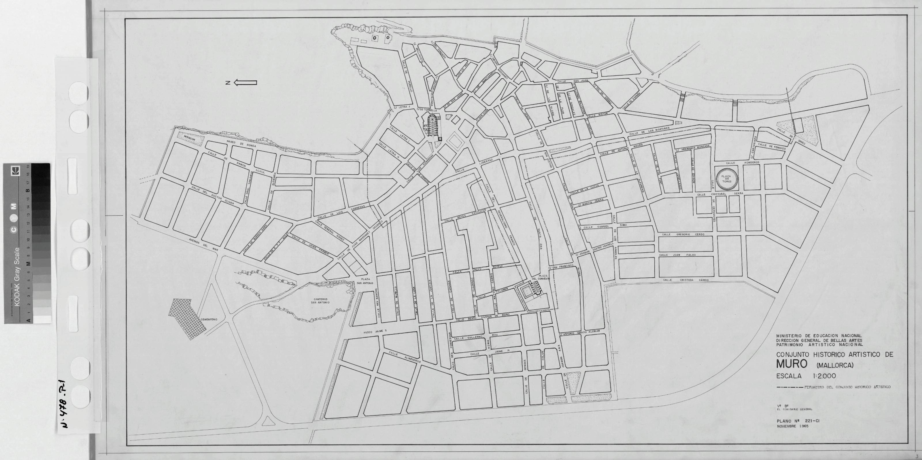 CONJUNTO HISTORICO ARTISTICO DE MURO. MALLORCA.: PLANO DE SITUACION. marca el perimetro del conjunto historico artistico,plano sin cotas, nomenclatura de calles.