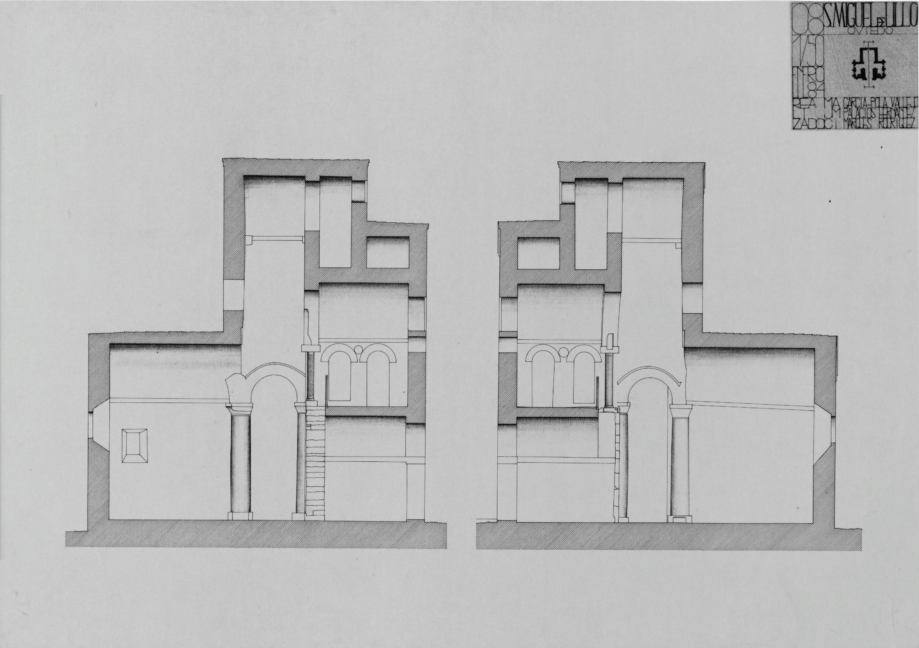 SAN MIGUEL DE LILLO: SECCIONES PERPENDICULARES AL ACCESO, SIN COTAS NI DENOMINACION DE USOS. PLANOS REALIZADOS POR PERSONAL CONTRATADO POR EL INEM