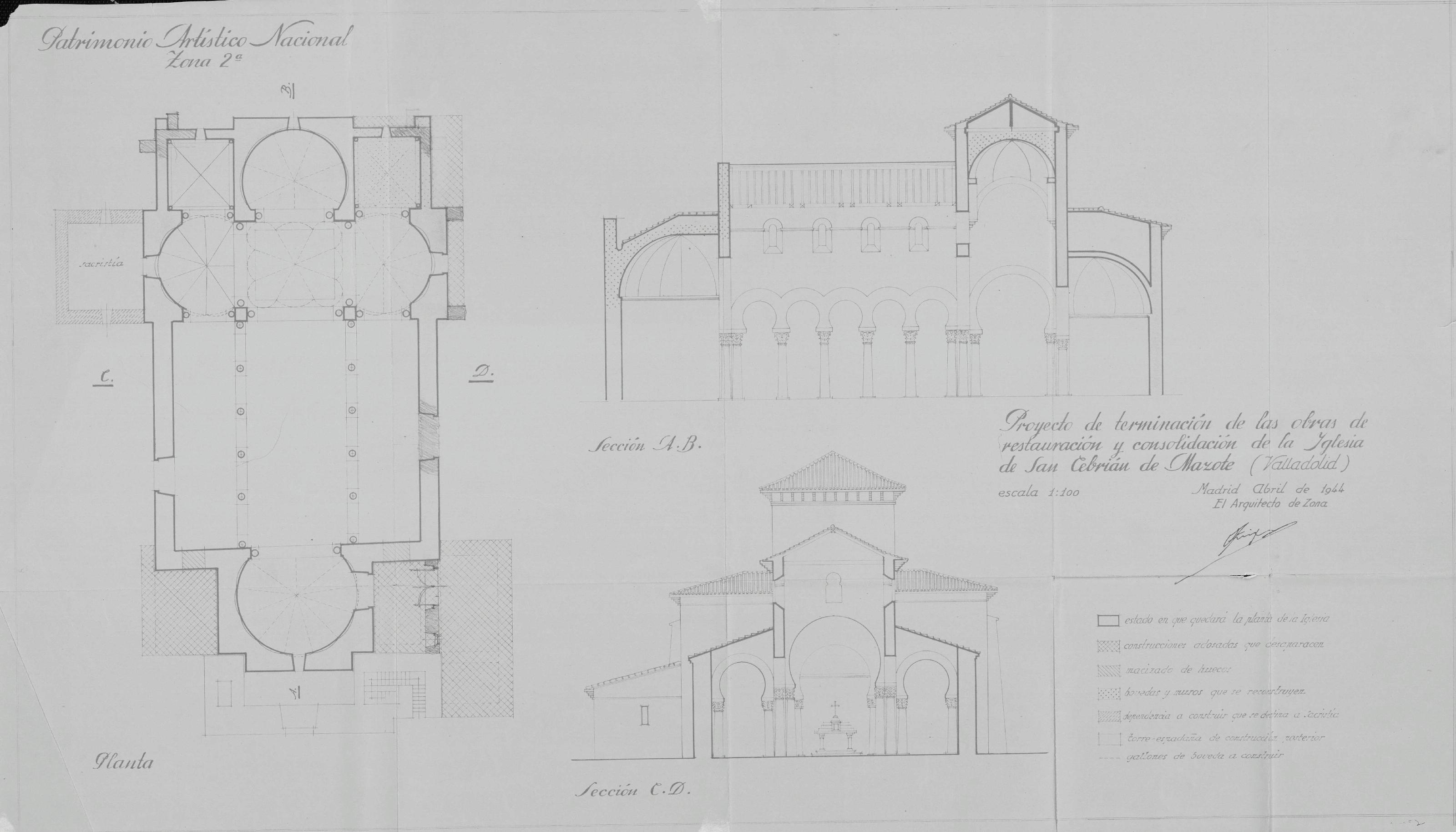 IGLESIA DE SAN CEBRIAN DE MAZOTE: PLANTA, SECCION A-B, SECCION C-D
