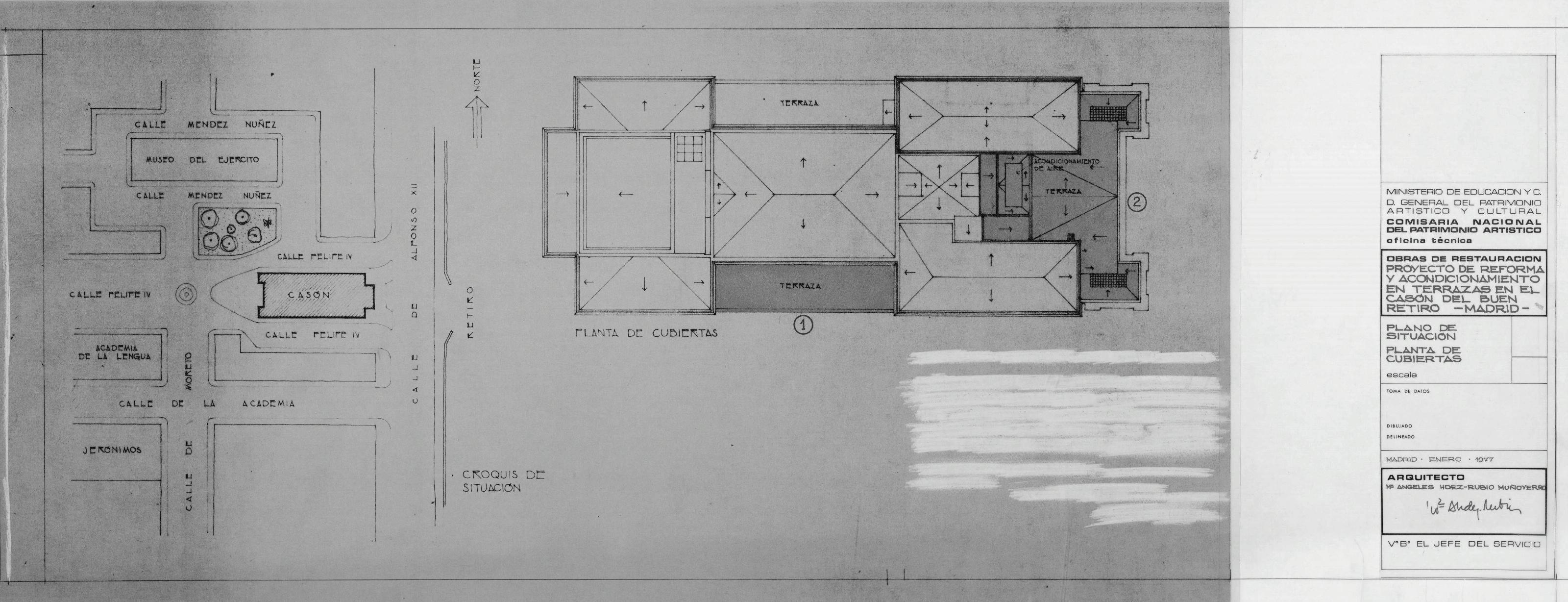 CASON DEL BUEN RETIRO: PLANO DE SITUACION Y CUBIERTAS