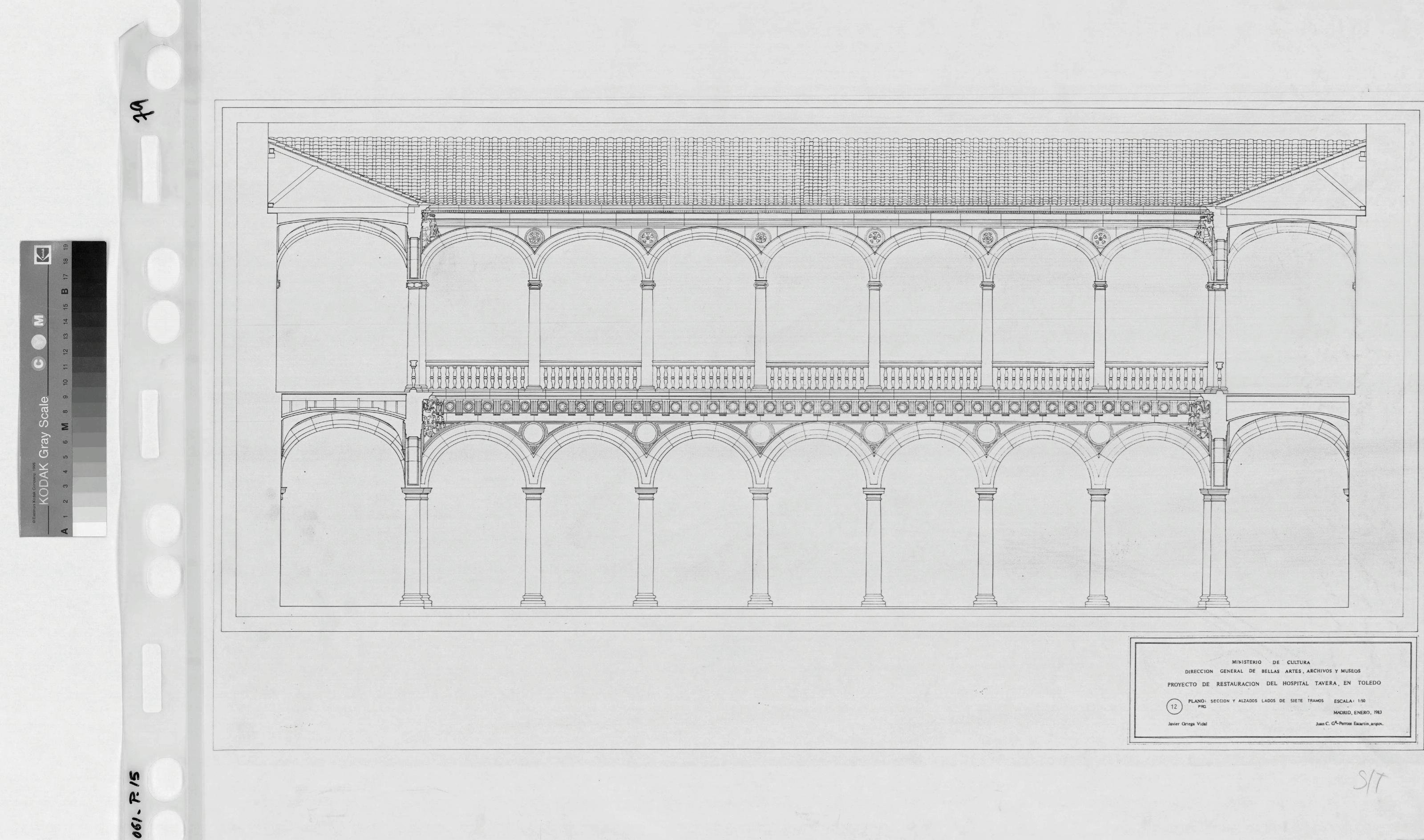 HOSPITAL DE TAVERA: SECCIÓN Y ALZADO LADOS DE SIETE TRAMOS