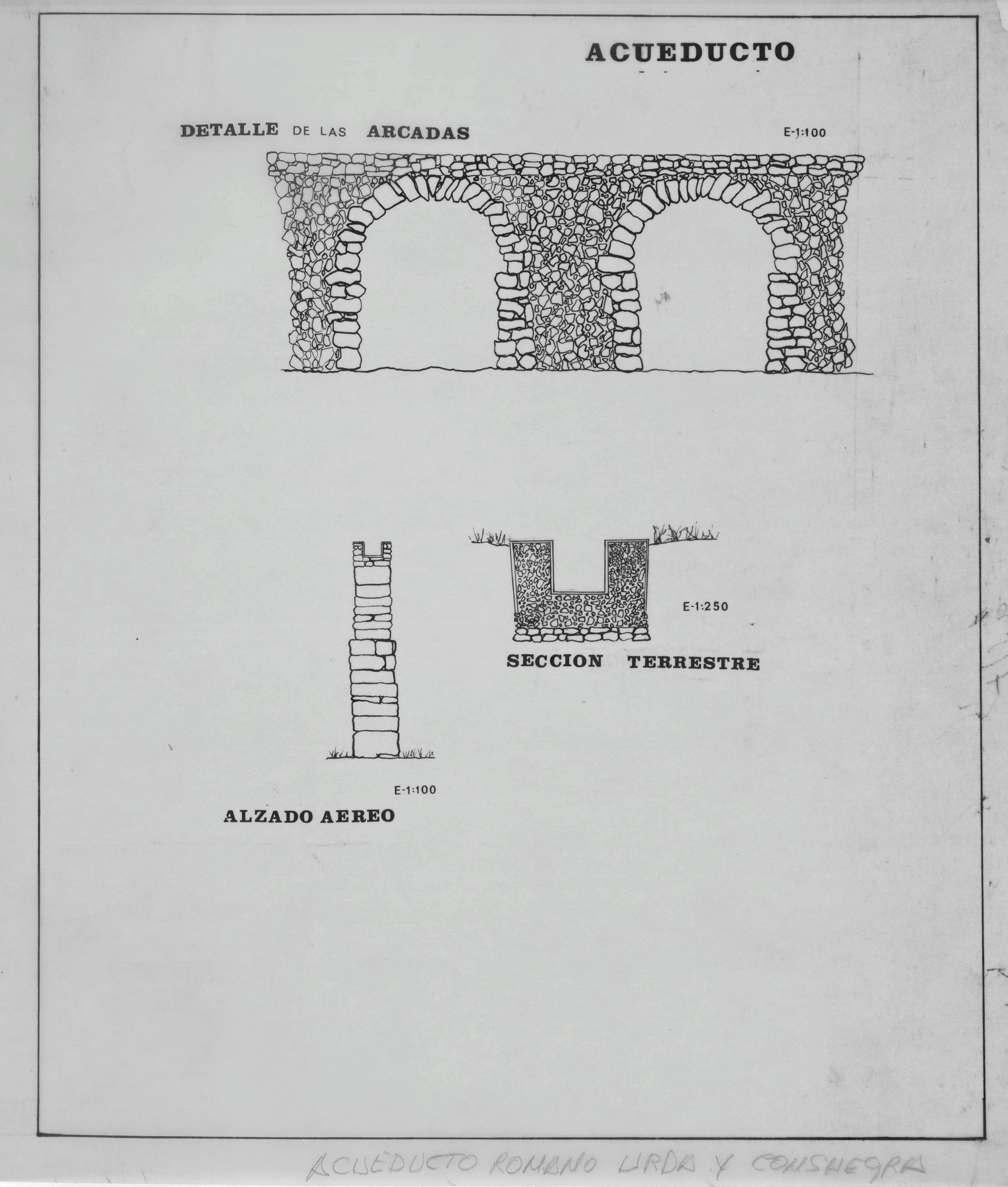 ARCO ROMANO: ACUEDUCTO: DETALLE DE LAS ARCADAS, ALZADO AÉREO Y SECCIÓN TERRESTRE