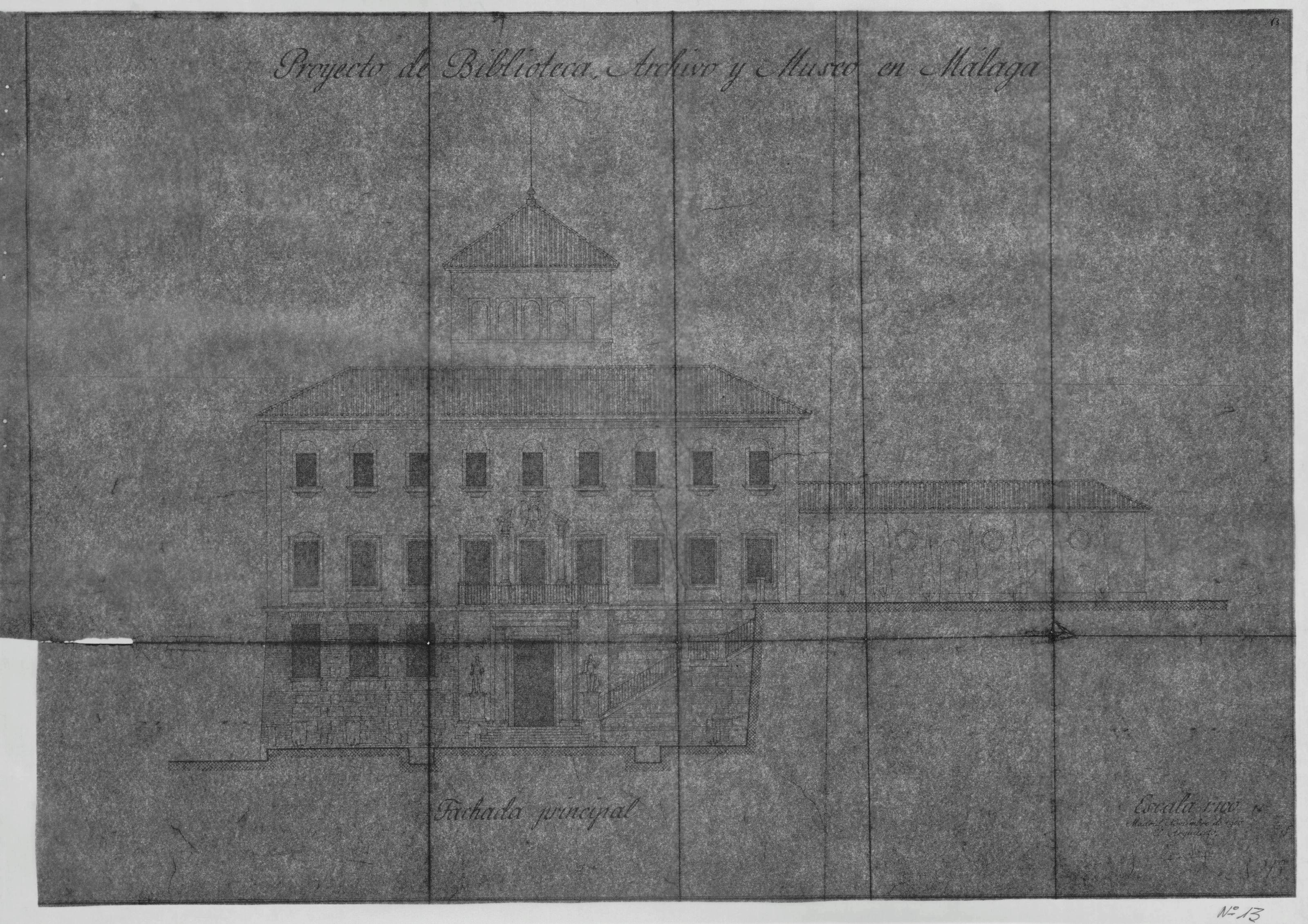PROYECTO DE BIBLIOTECA-ARCHIVO Y MUSEO: FACHADA PRINCIPAL