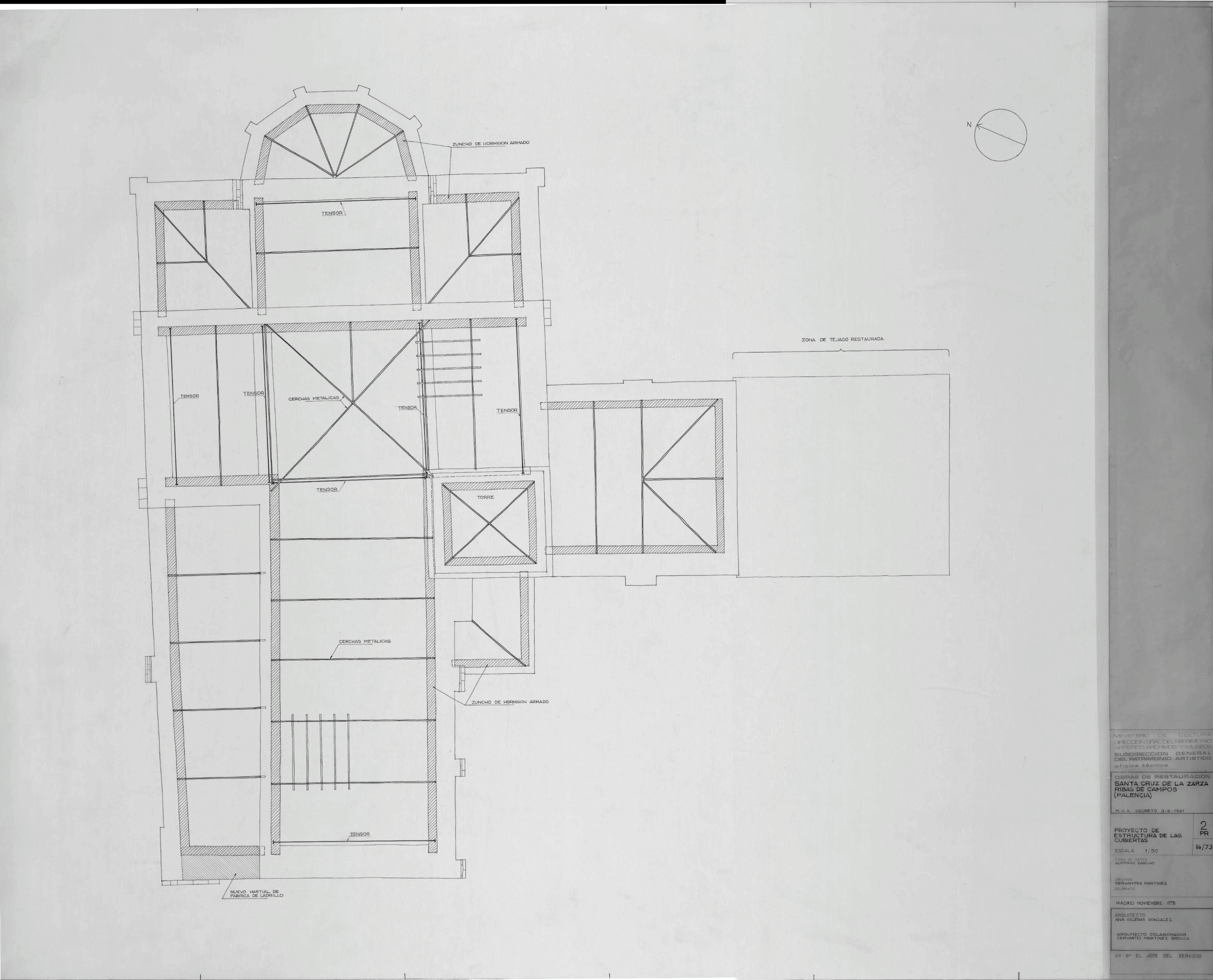CONJUNTO HISTORICO ARTISTICO DE SANTA CRUZ DE LA ZARZA RIBAS DE CAMPOS PALENCIA: ESTRUCTURA DE CUBIERTA PROYECTO