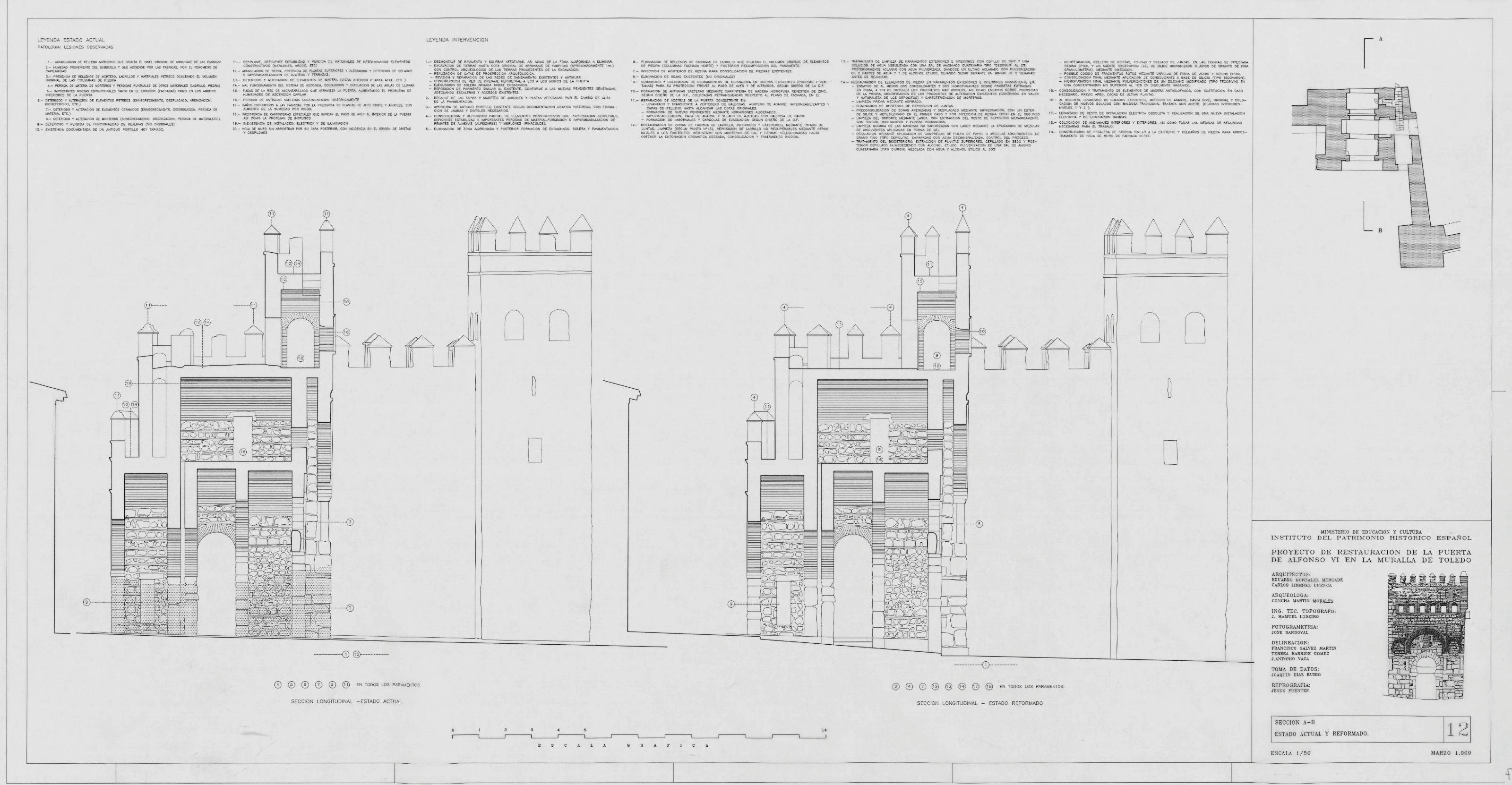 PUERTA DE ALFONSO VI. MURALLAS DE TOLEDO: SECCION A-B. ESTADO ACTUAL Y REFORMADO