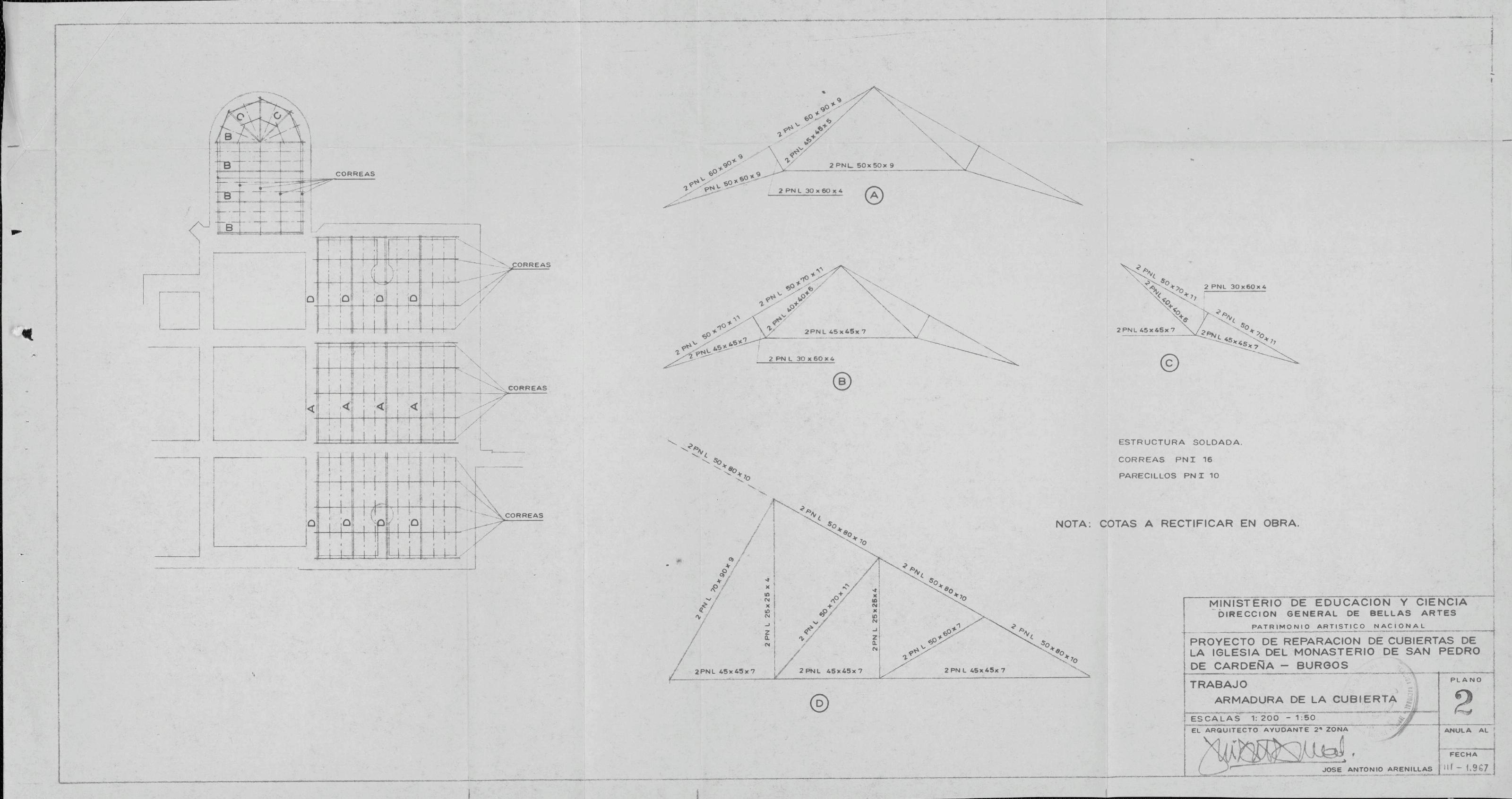 Monasterio de san Pedro de Cerdeña. Castrillo del Val. Burgos.: Reparación de cubiertas y saneamiento de la Capilla del Cid y de la cubierta de la Iglesia y Sala Capitular. Armaduras de la cubierta.