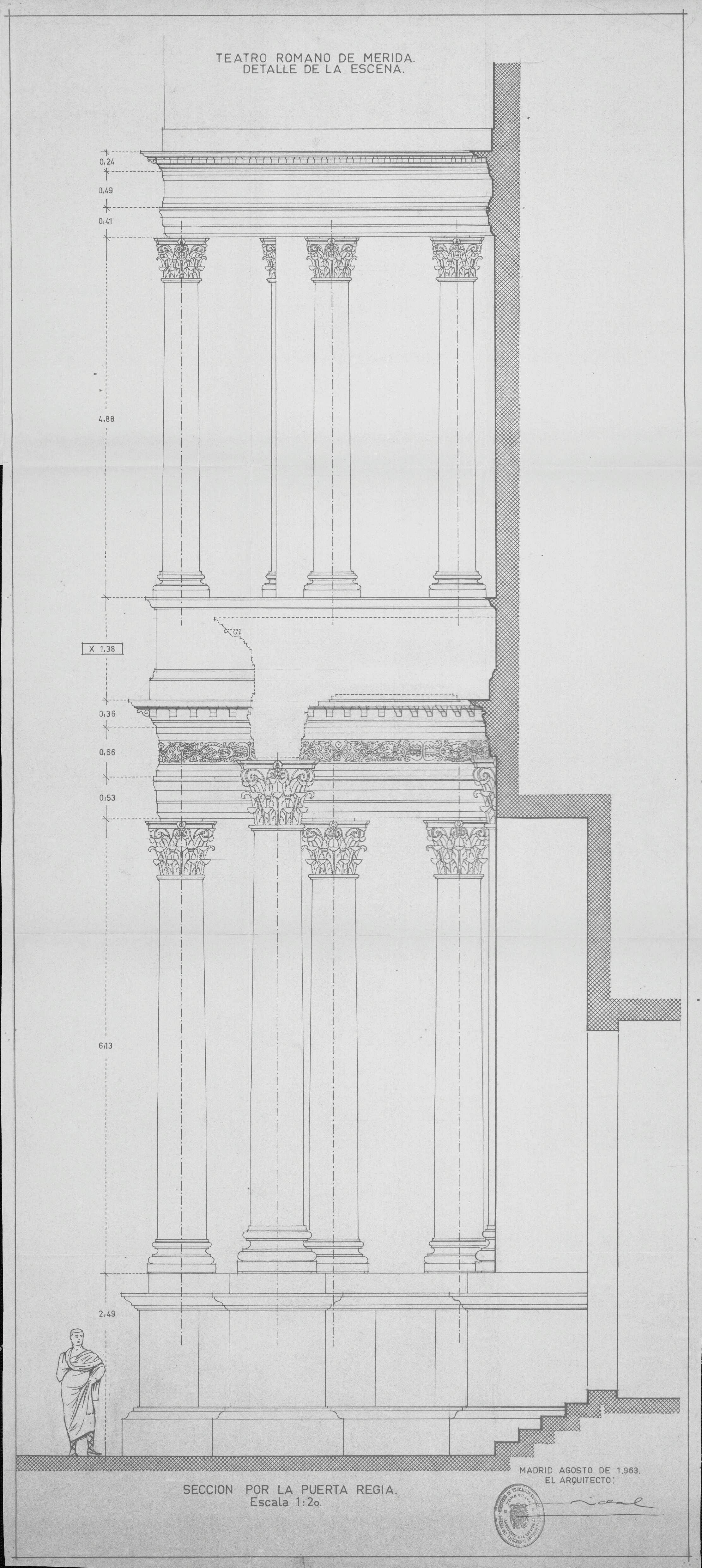 TEATRO ROMANO. MÉRIDA.: SECCIÓN POR LA PUERTA REGIA.