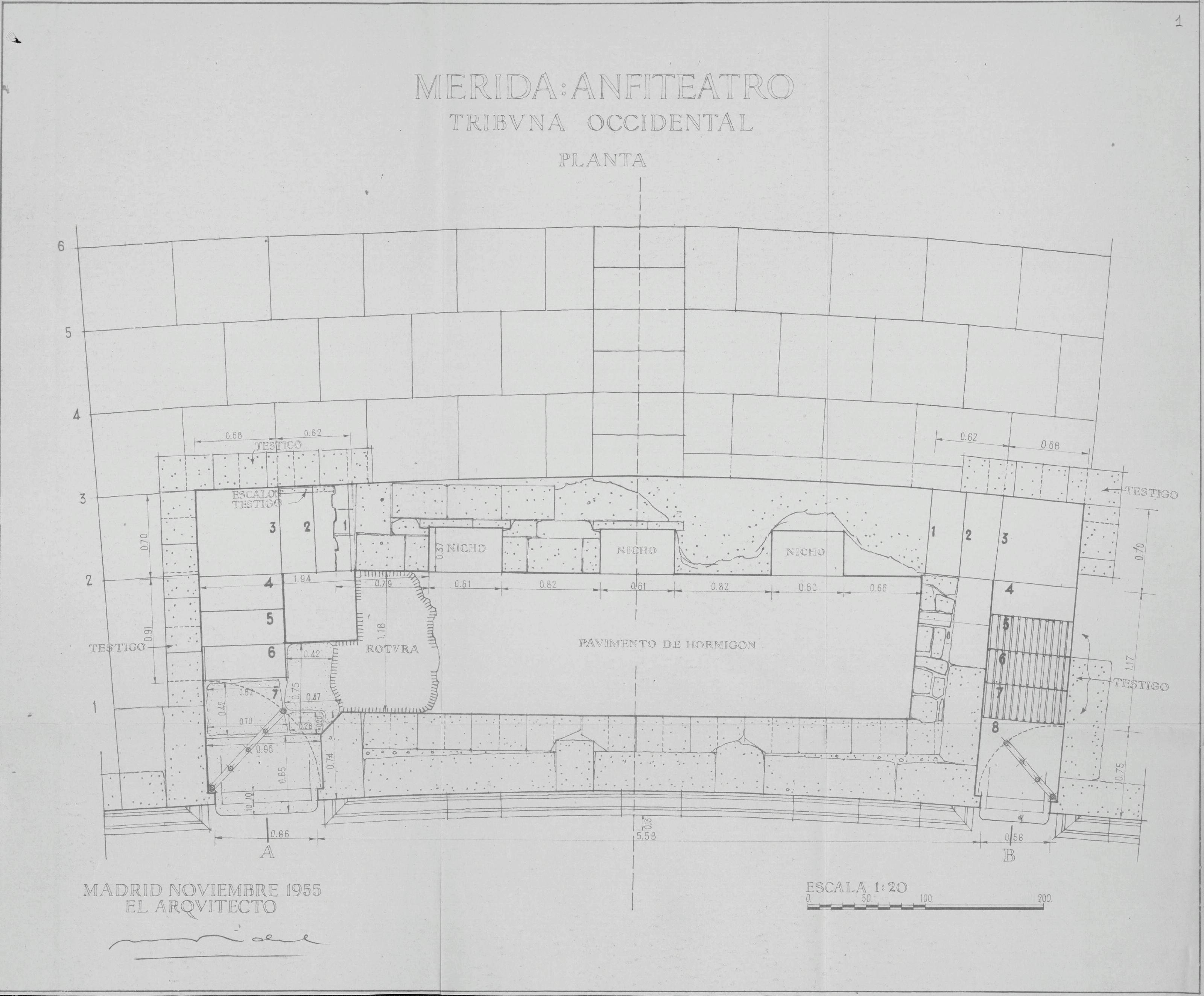 ANFITEATRO ROMANO: TRIBUNA OCCIDENTAL (PLANTA Y SECCIONES)