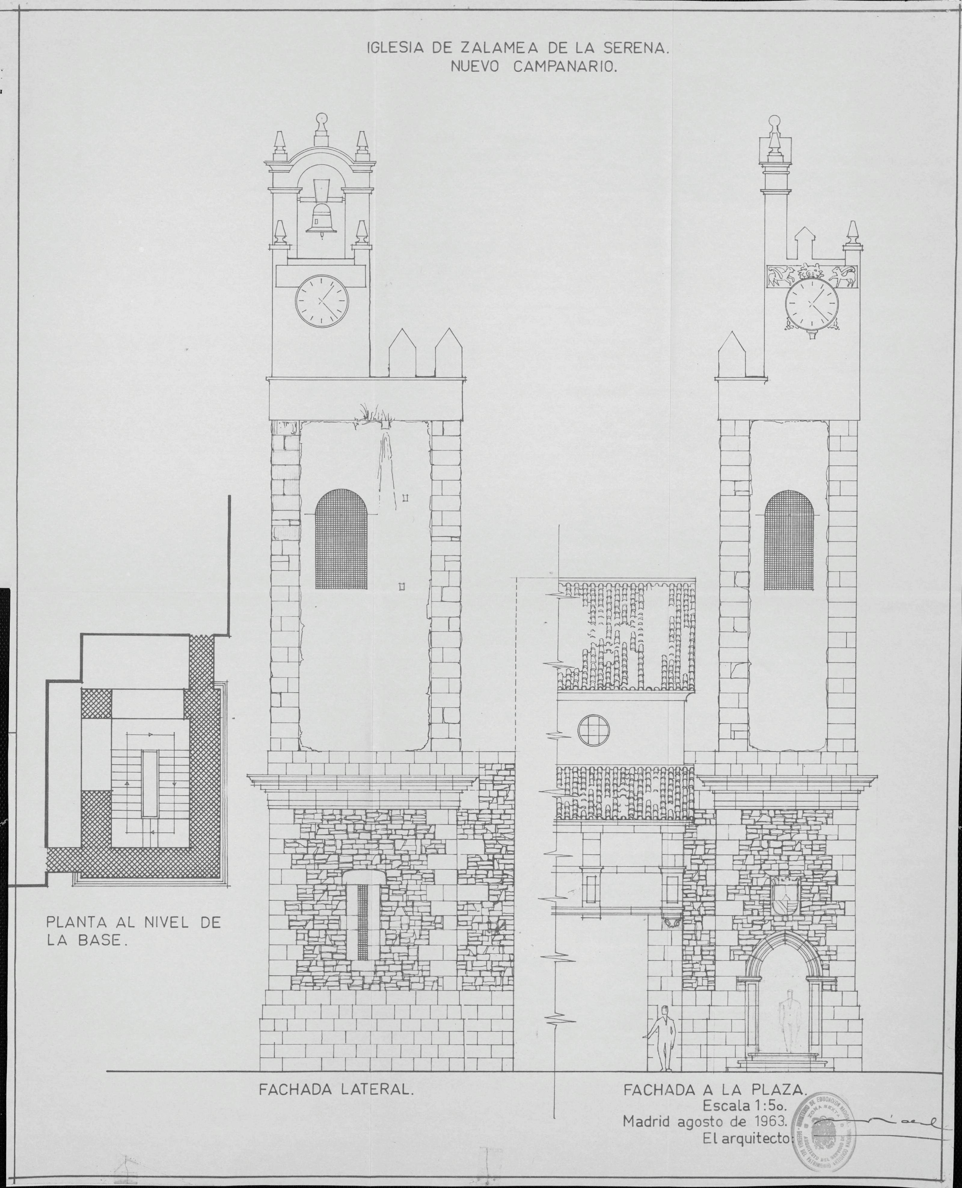IGLESIA PARROQUIAL: NUEVO CAMPANARIO (PLANTA Y FACHADAS)