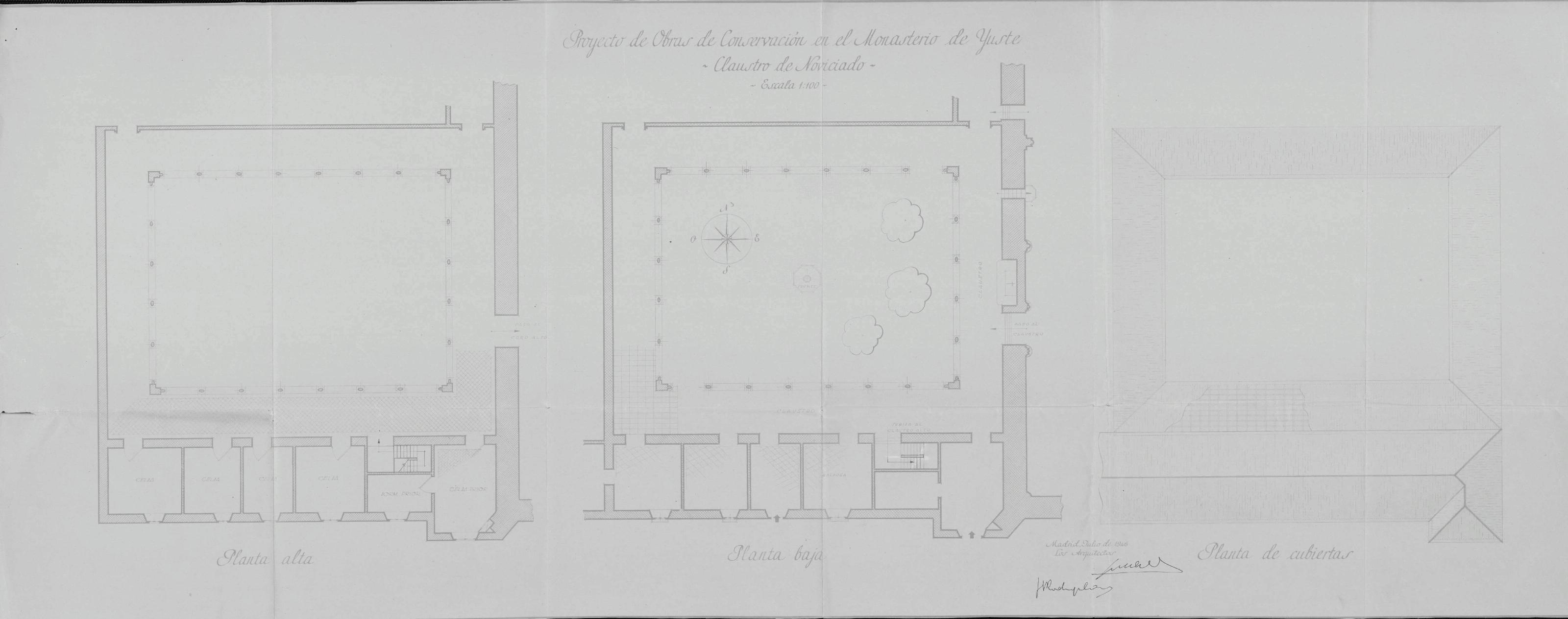 Monasterio de Yuste (Caceres) -Claustro de Noviciado-: Planta Alta Planta Baja Planta de Cubiertas