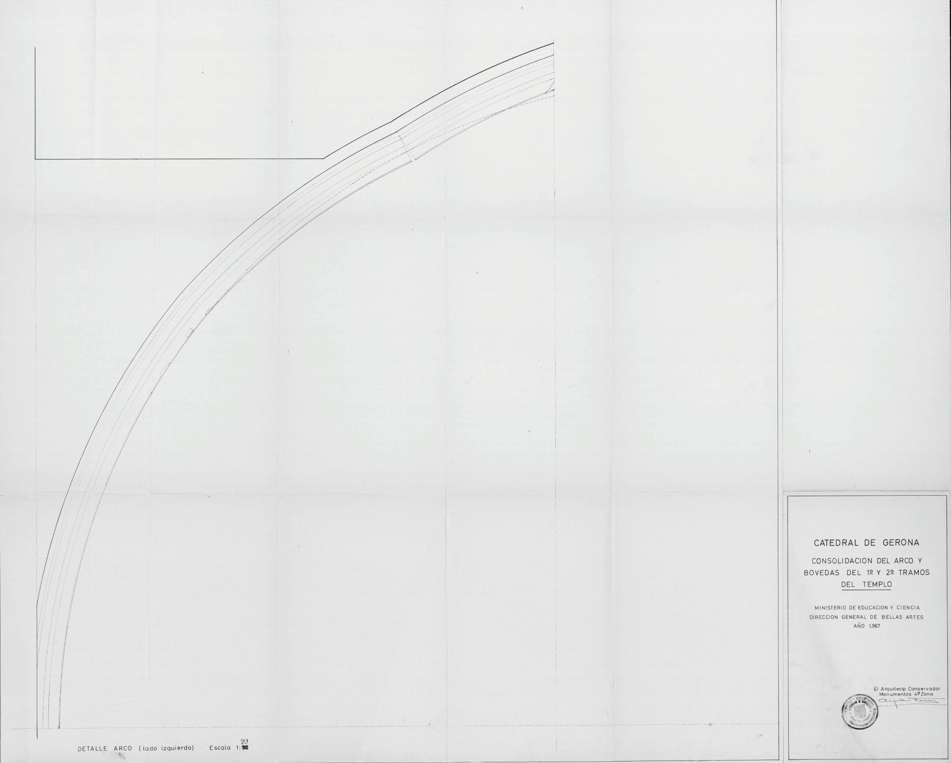 OBRAS DE CONSOLIDACION EN LA CATEDRAL DE GIRONA: CONSOLIDACION DEL ARCO Y BOVEDAS DEL 1ª Y 2ª TRAMOS DEL TEMPLO. (DETALLE ARCO, LADO IZQUIERDO)