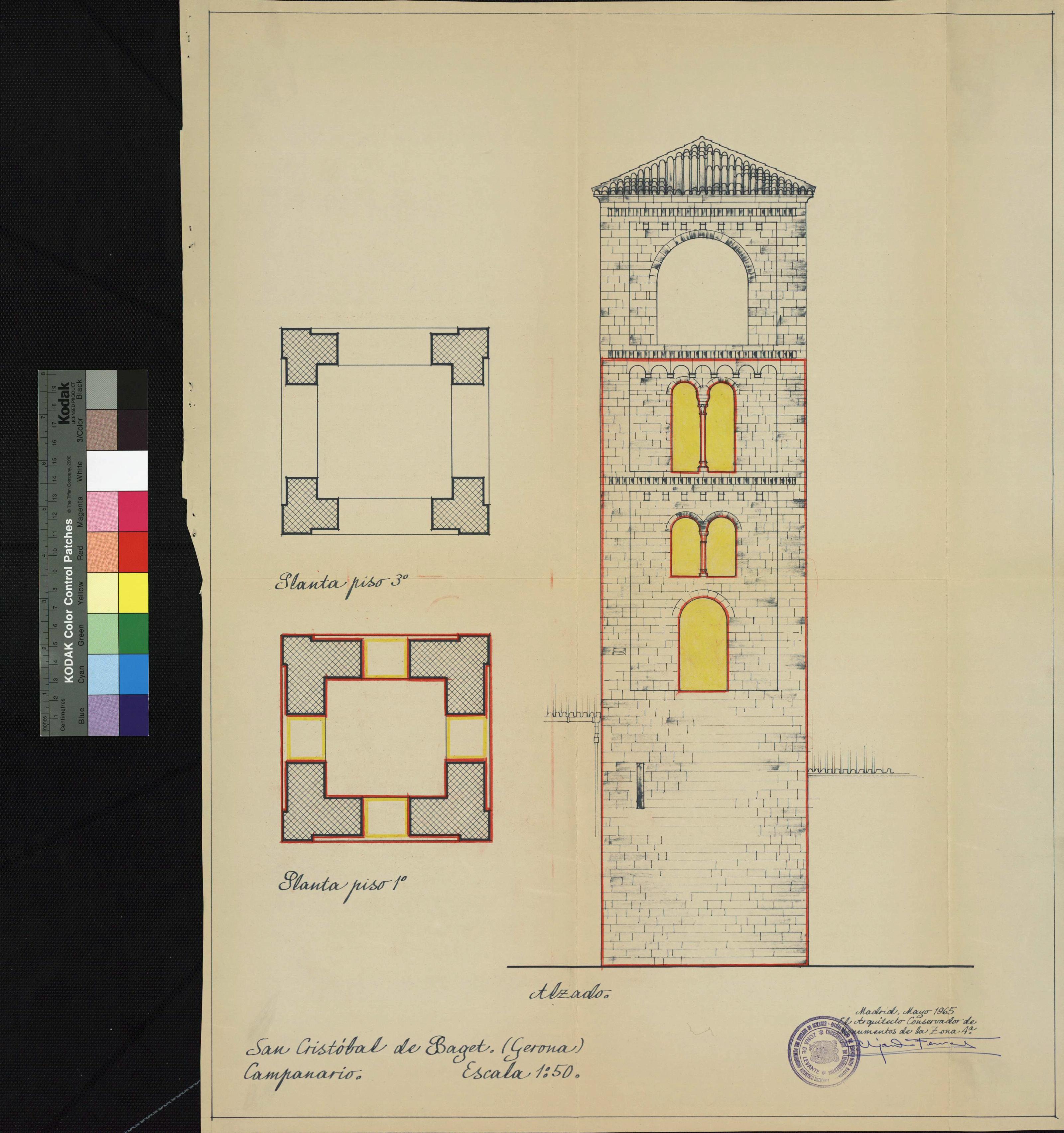 OBRAS DE CONSERVACION DEL CAMPANARIO DE LA IGLESIA DE SAN CRISTOBAL DE BAJET: ALZADO, PLANTA. PISO 1º Y 3º.