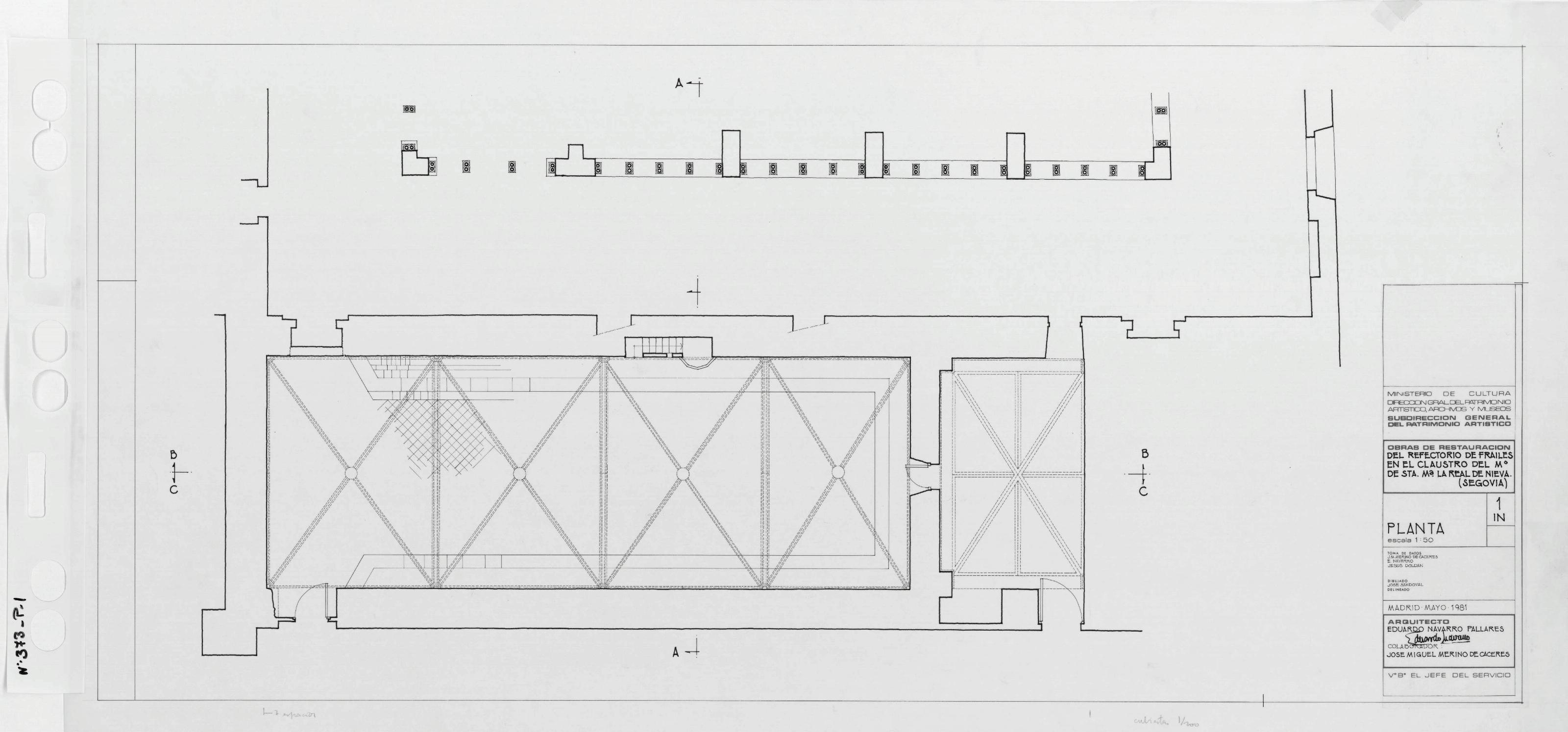 MONASTERIO DE SANTA MARIA LA REAL REFECTORIO DE LOS FRAILES EN EL CLAUSTRO. SEGOVIA: PLANTA
