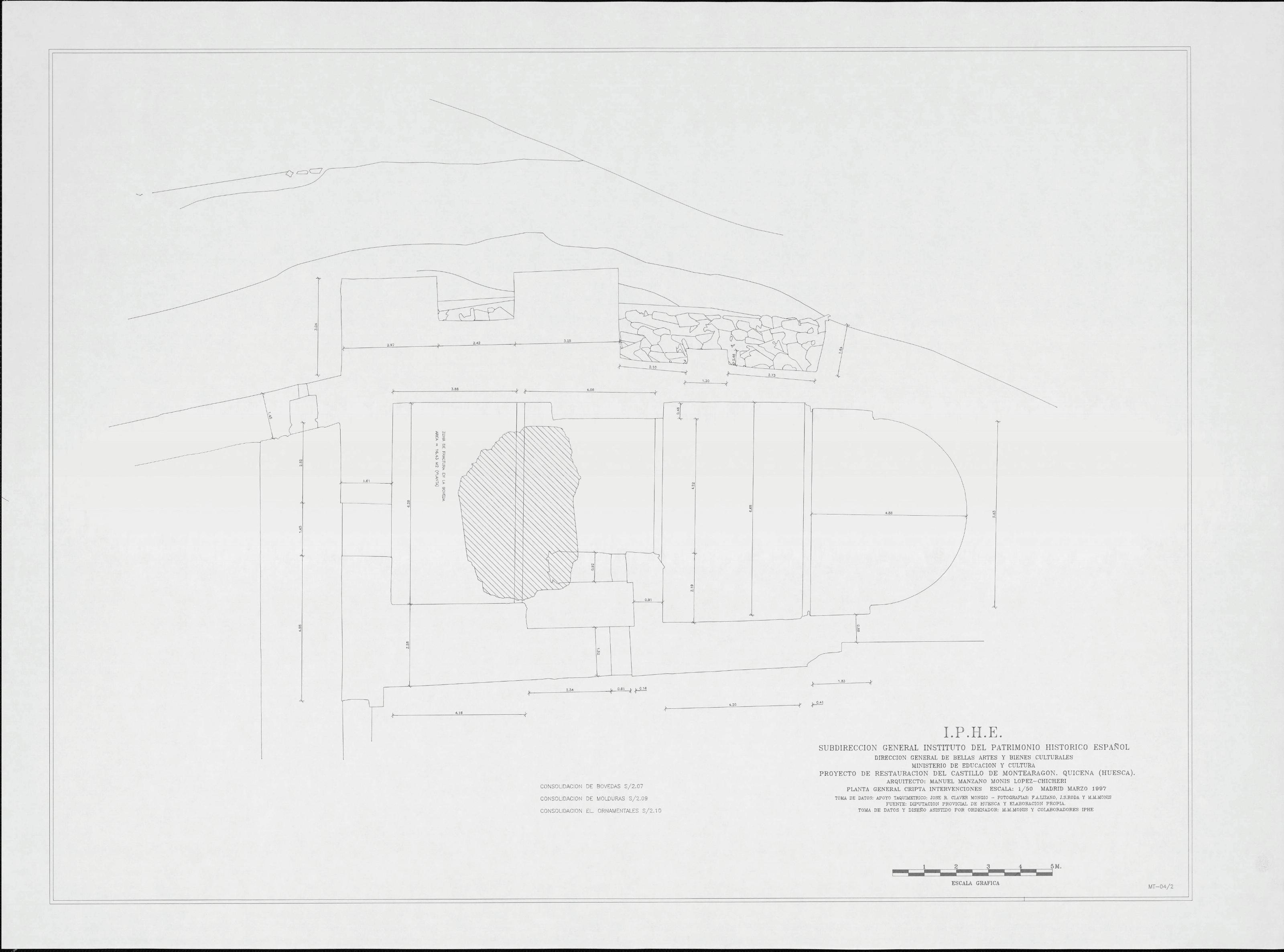 CATILLO DE MONTEARAGON: PLANTA GENERAL. CRIPTA INTERVENCIONES
