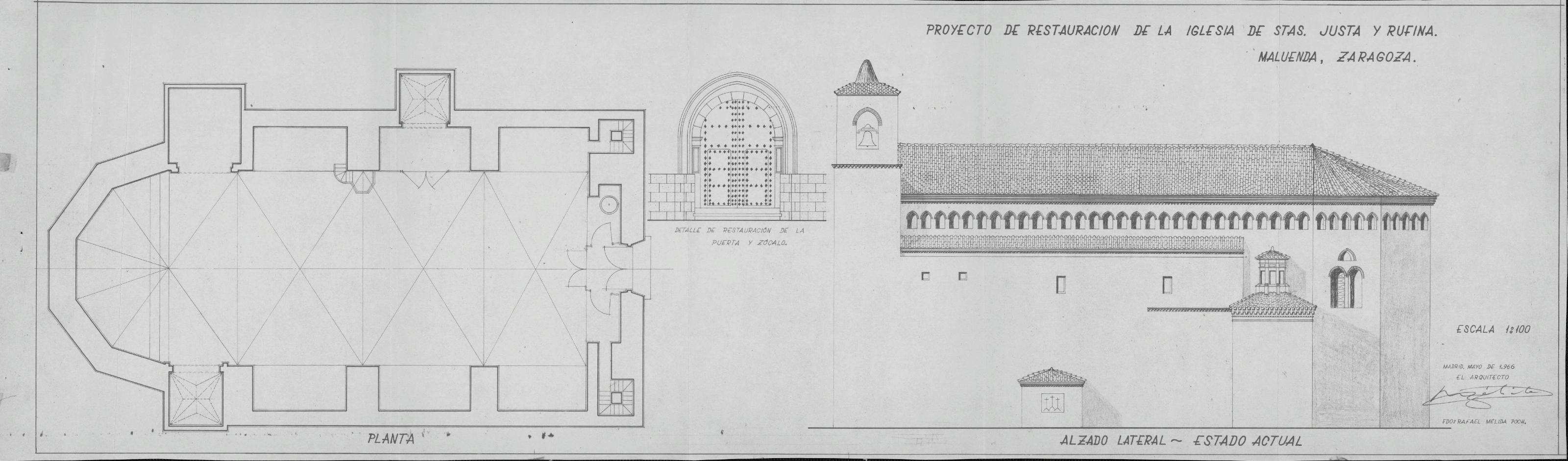 Proyecto de Restauración de la Iglesia de Stas. Justa y Rufina -Maluenda- ( Zaragoza): Planta Alzado Lateral -Estado Actual-