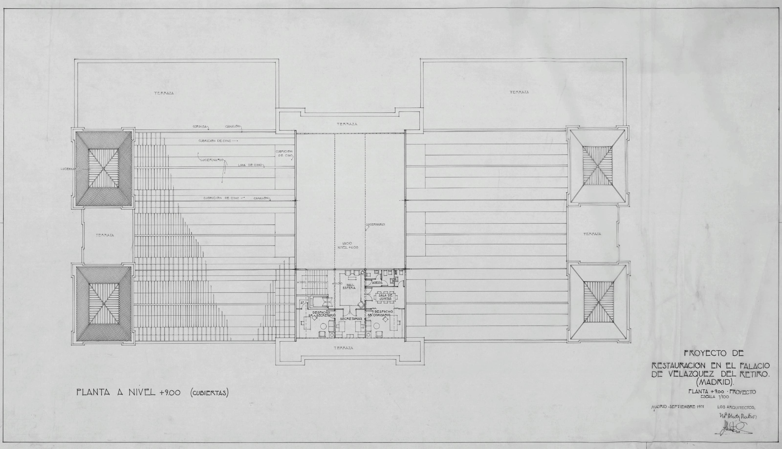 PALACIO DE VELAZQUEZ: PLANTA +9.00 PROYECTO. (CUBIERTAS).